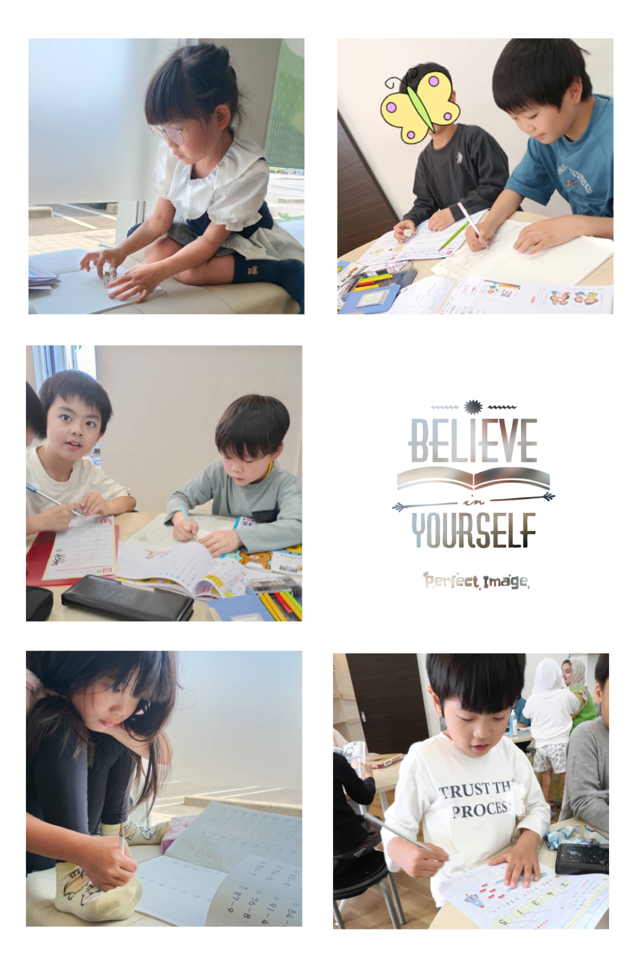 仲良しのお友だちと、自分の好きな場所で宿題です。