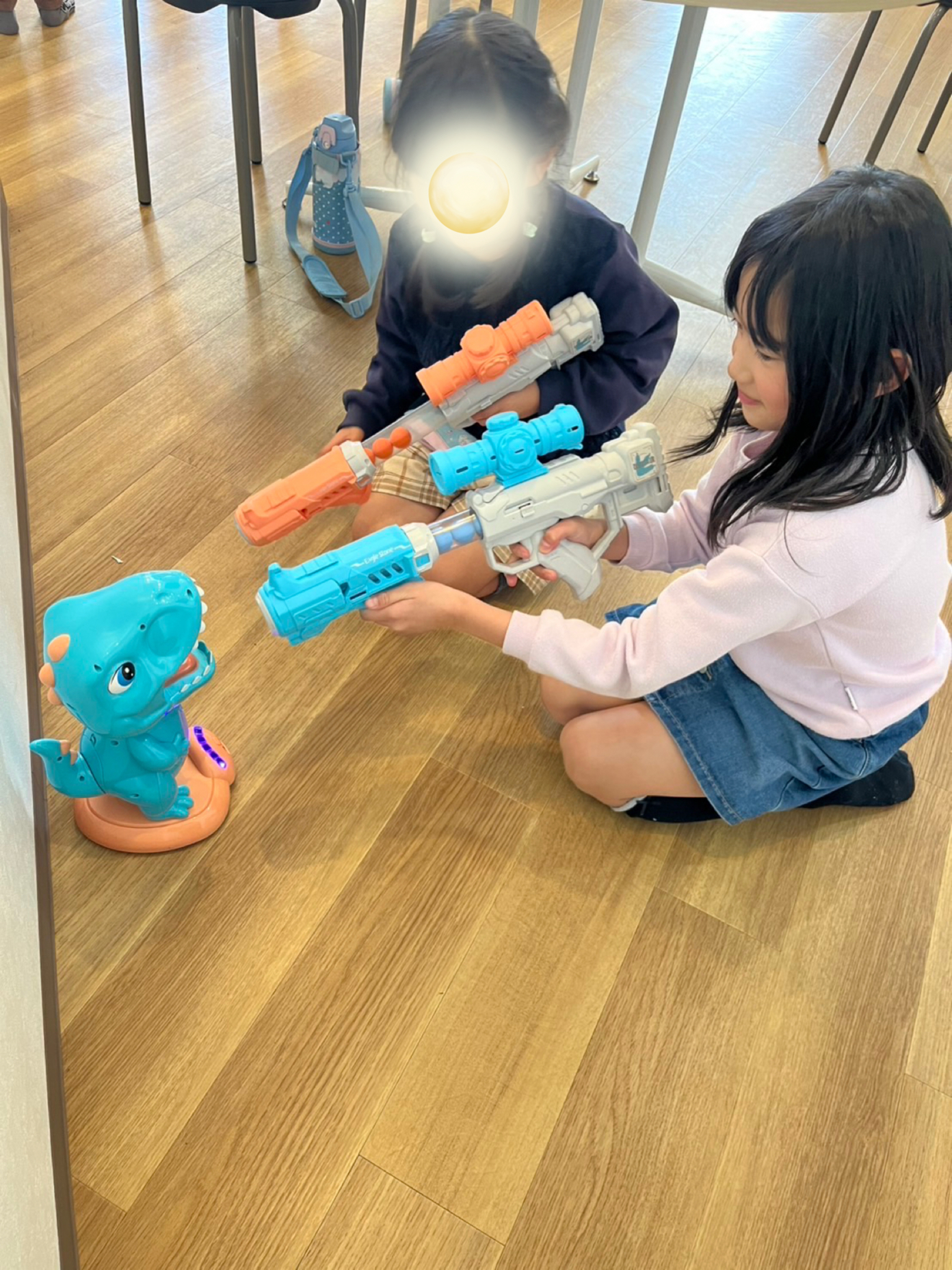 こちらは恐竜の口の中にボールを撃つおもちゃで遊んでいる様子😄