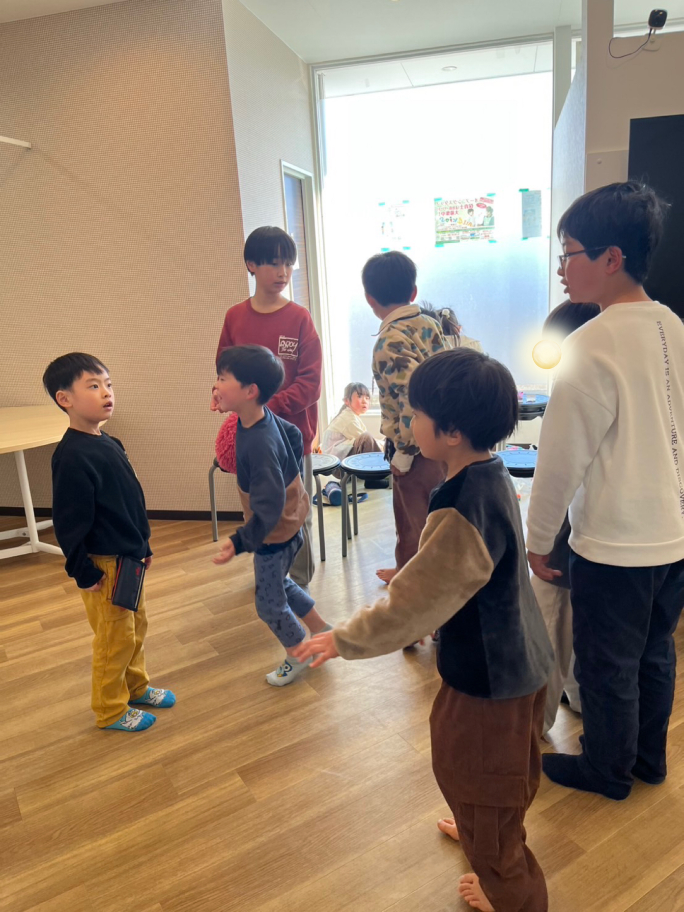 こちらの男の子達はドッヂボールのグループ分けをしています😊