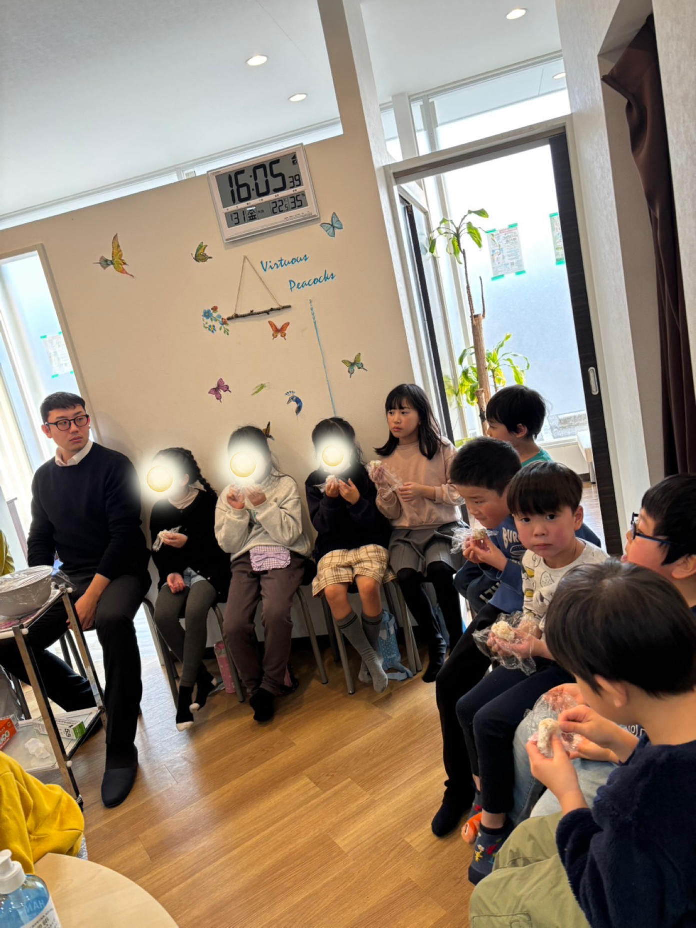 普段おやつの時は高学年の子供達が先生の横に座っているのですが…