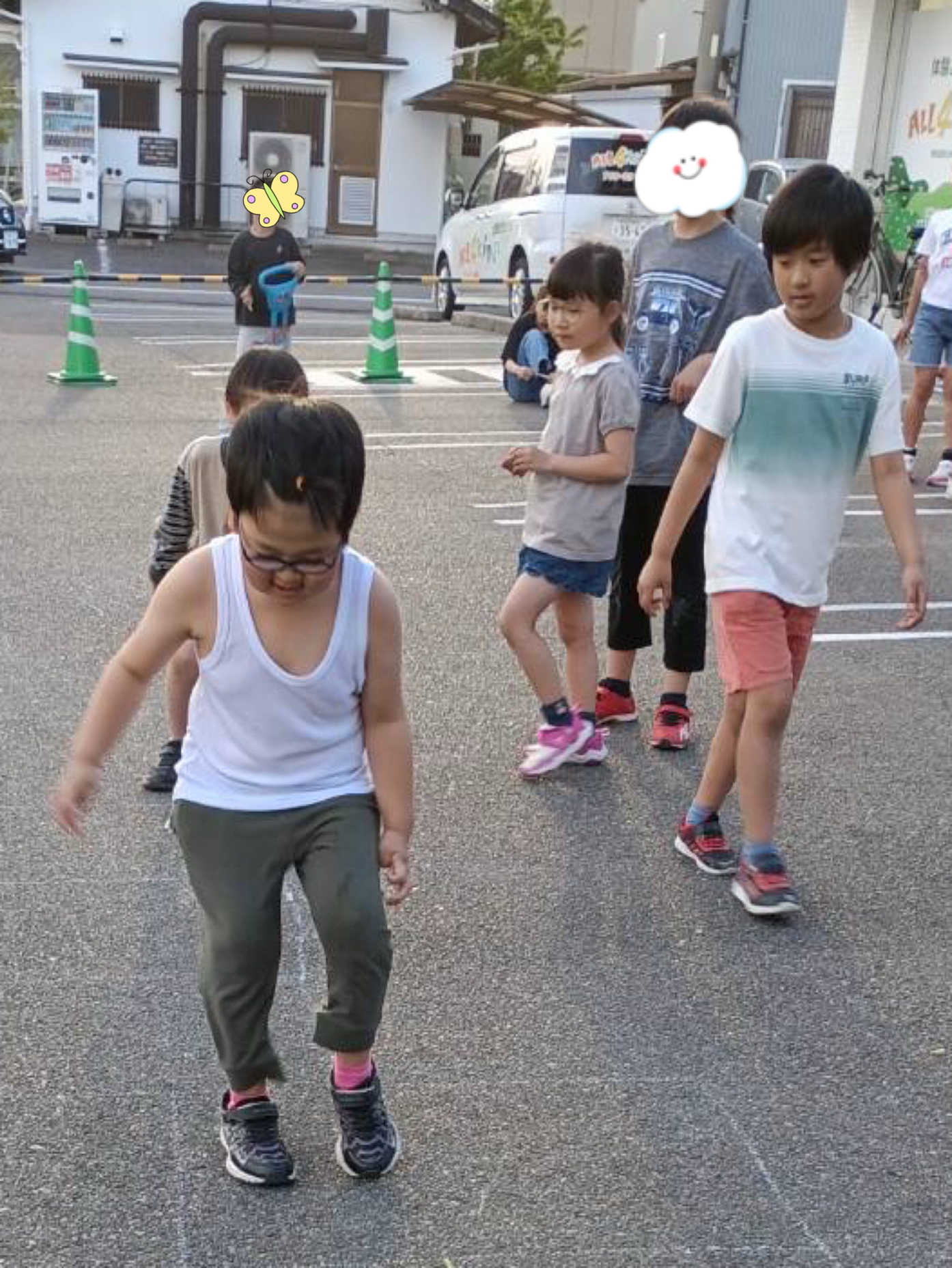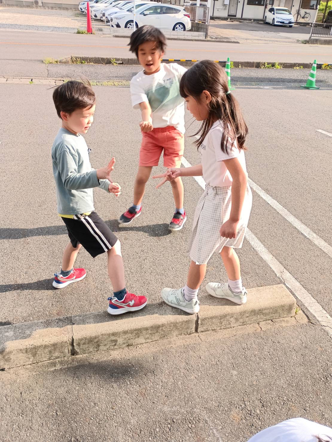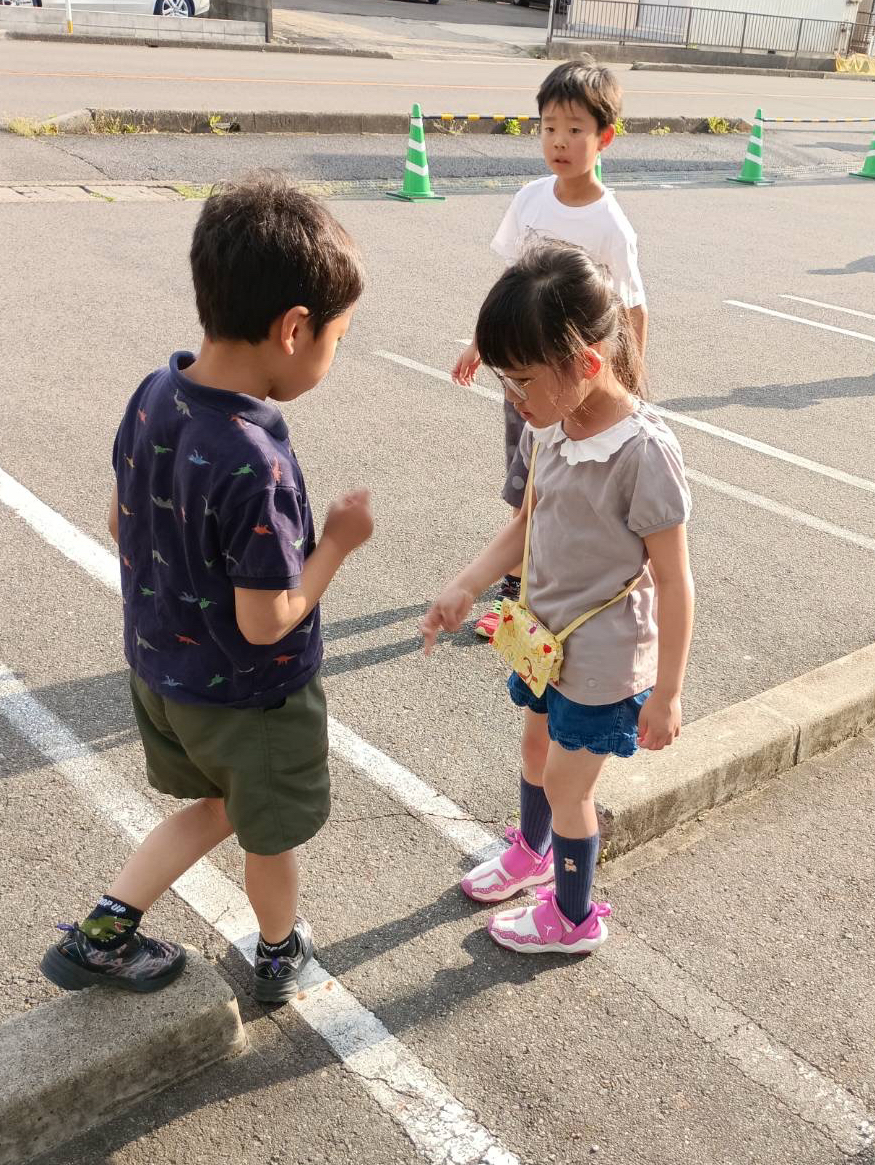 駐車場に出て遊ぶことに