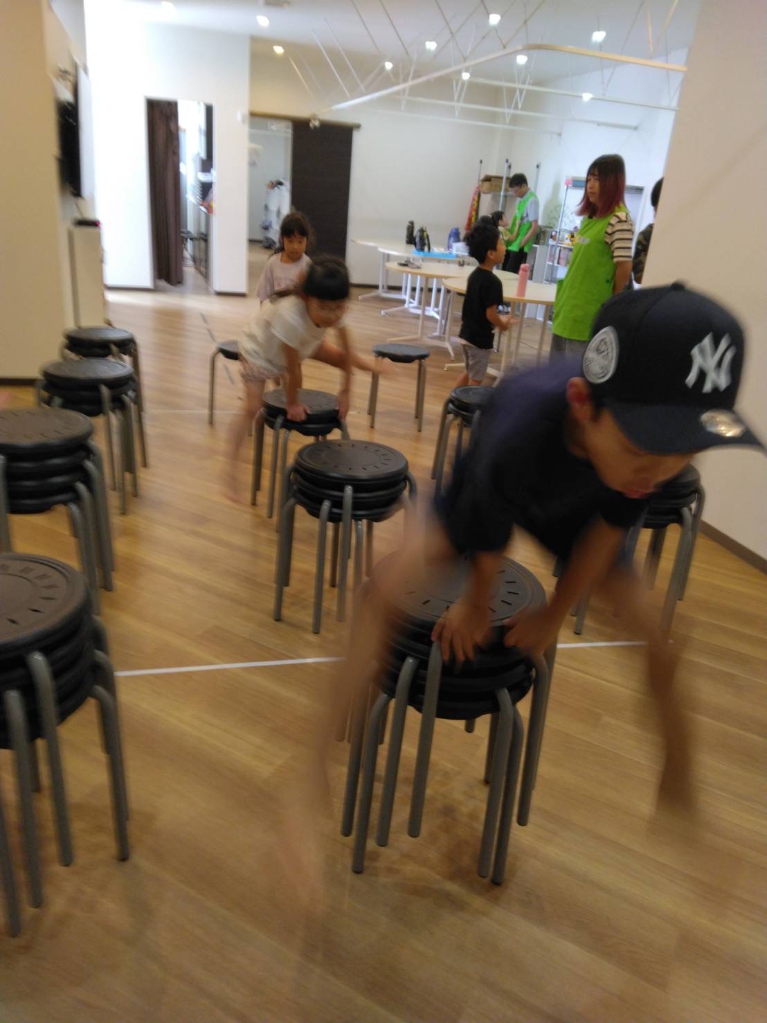 お勉強の後は椅子を並べて跳び箱遊びをしたのですがなにやら様子が…