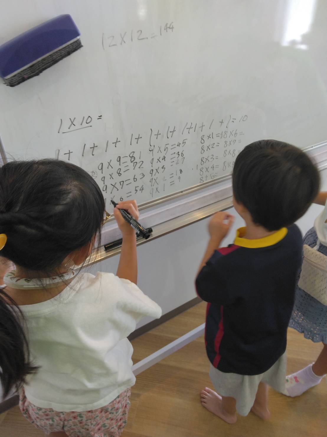 と、ホワイトボードに9の段の掛け算を書き始め…