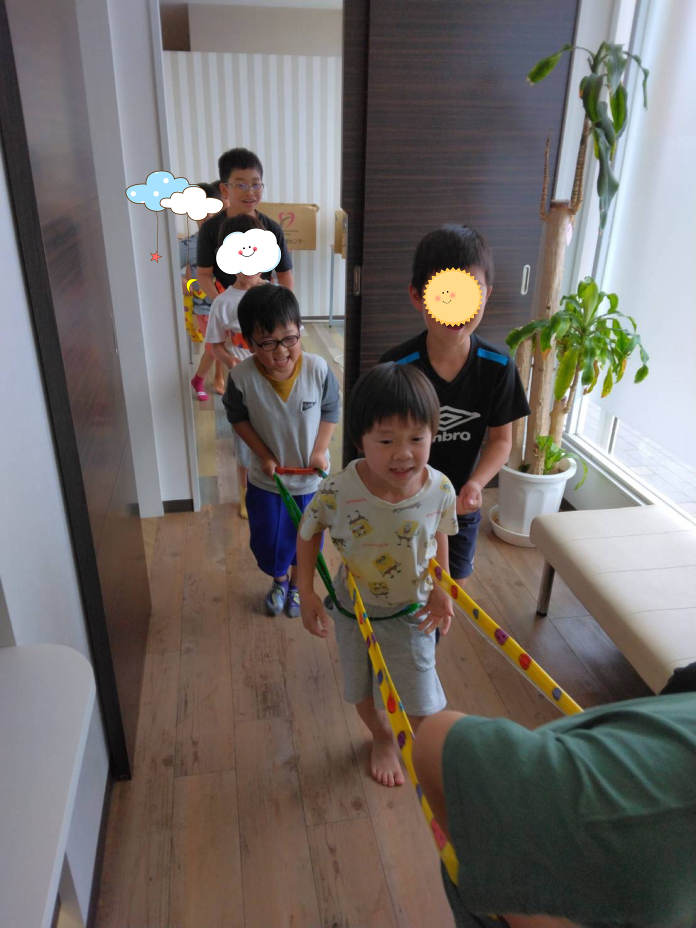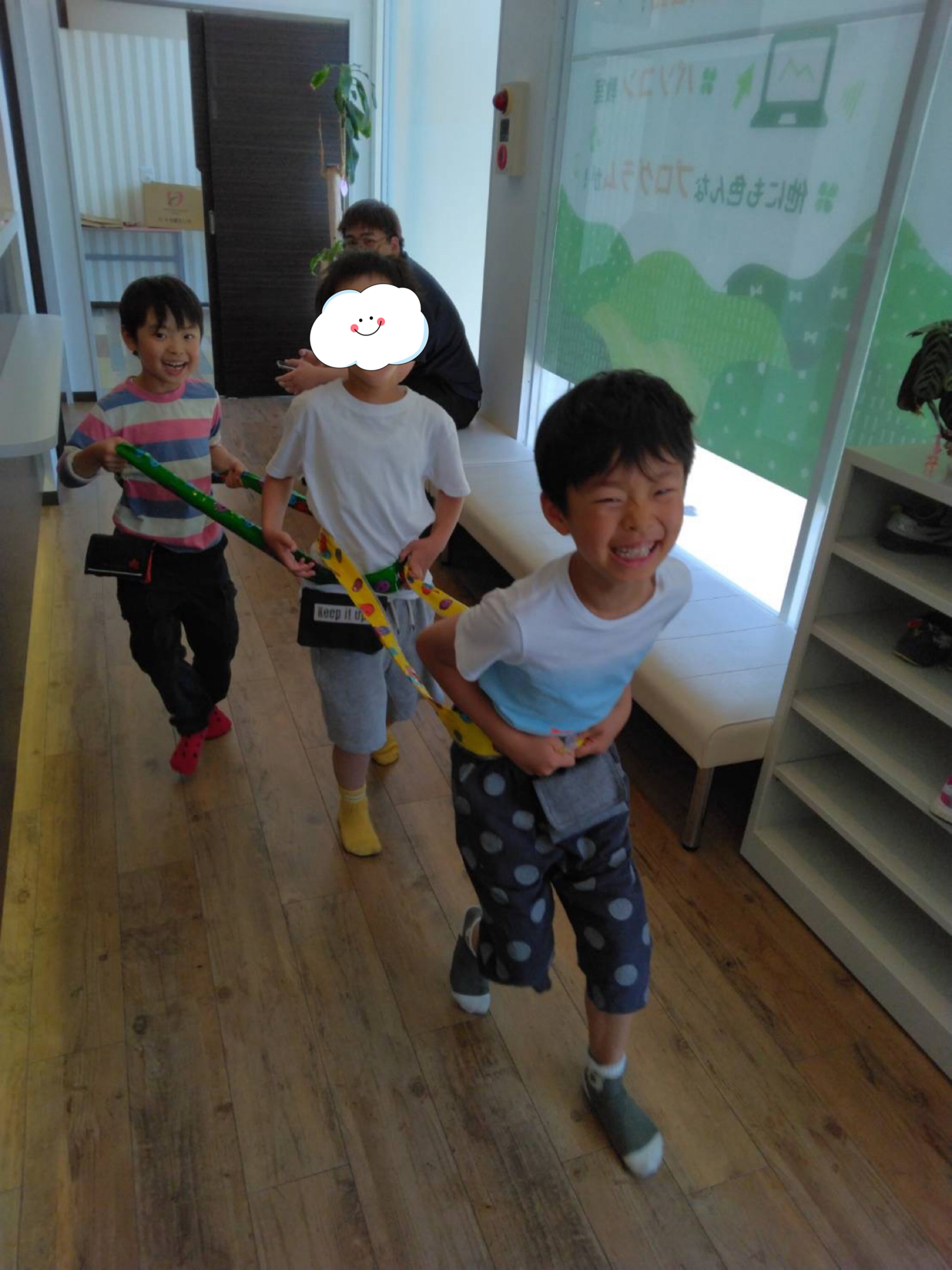 こんな電車ごっこに、次に帰ってきた上級生も混ざり、しゅっぱーつ🚃