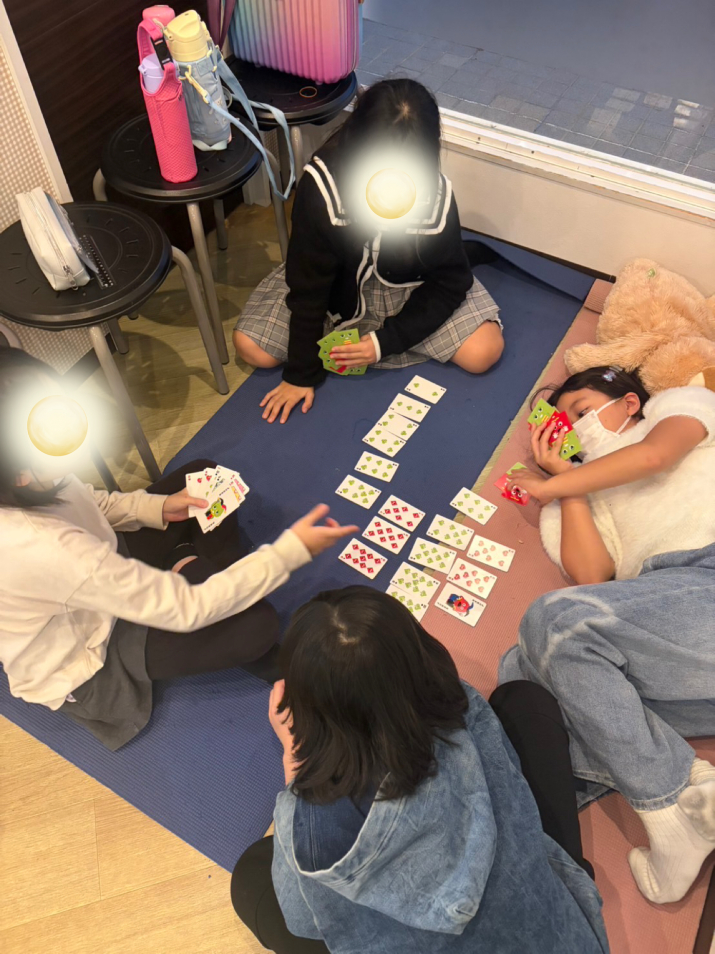 女の子たちは7並べを楽しんでいました😊とてもリラックスしていますね🤭