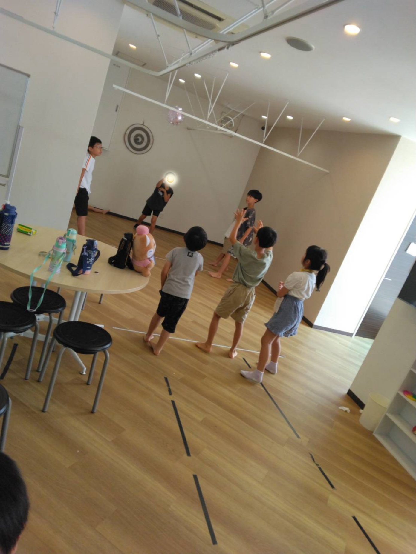 昨日の夕方にビーチボールを膨らまし少し遊んでいたのですが、すぐお片付けの時間になった為少し物足りなかった様子の子ども達…
