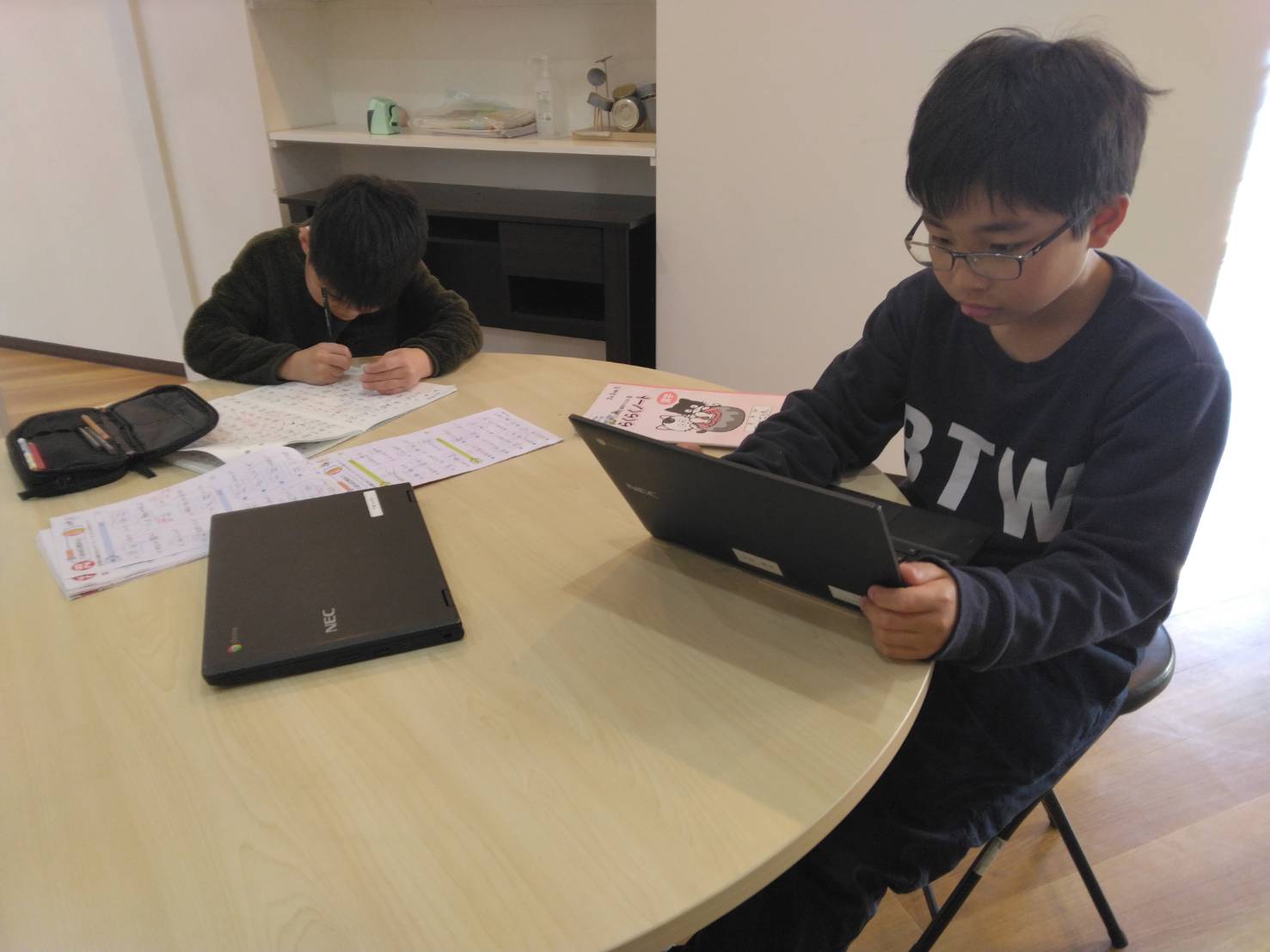 パソコンの宿題でした。なんて言いますか…計算や漢字の書き取りより集中して取り組めているような…