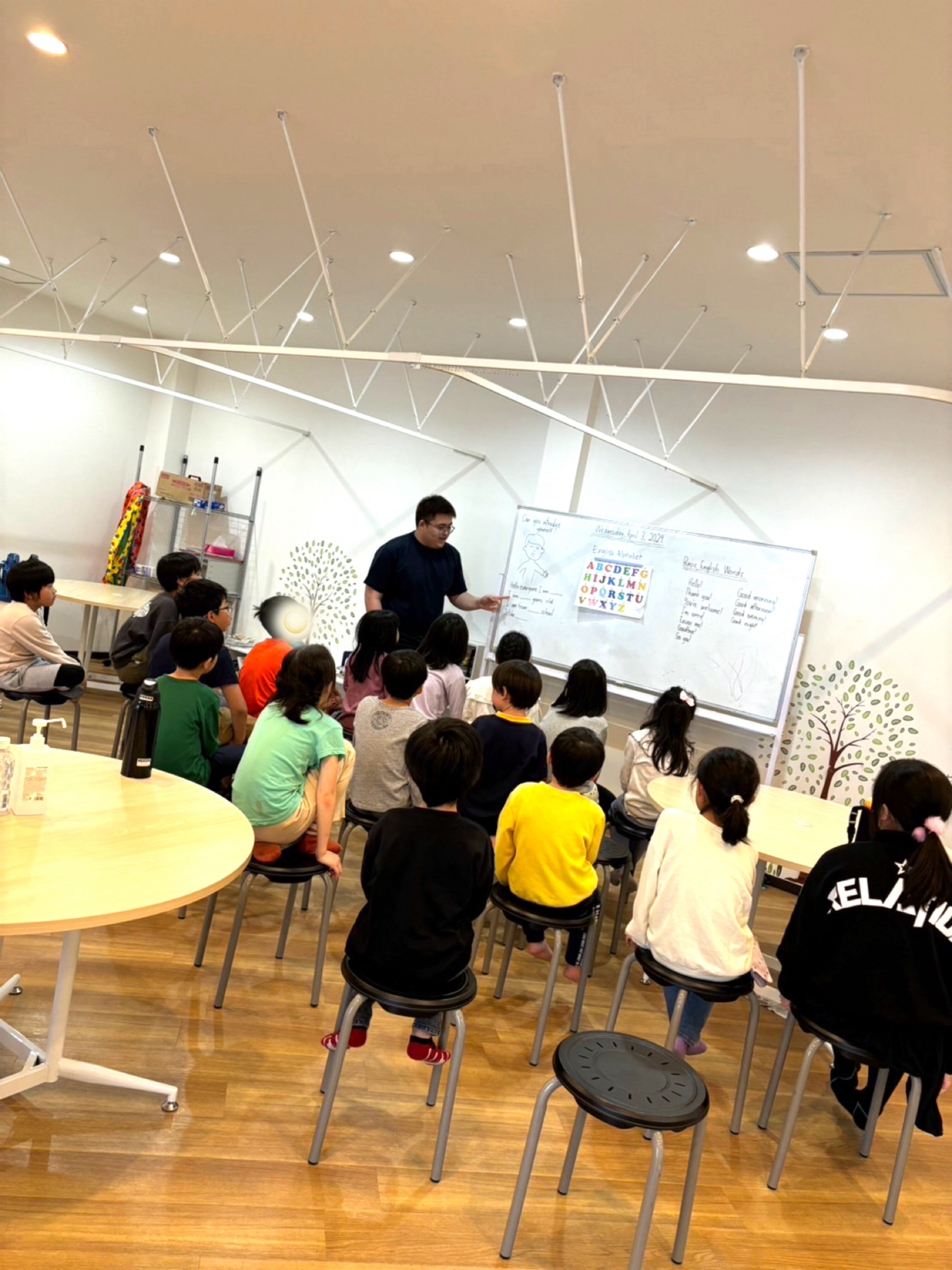 みんなの前に出て高学年のお友だちが英語で自己紹介してくれたのですが、その様子を新しく入ったお友だちは皆、真剣な表情でしっかり見ていました👀