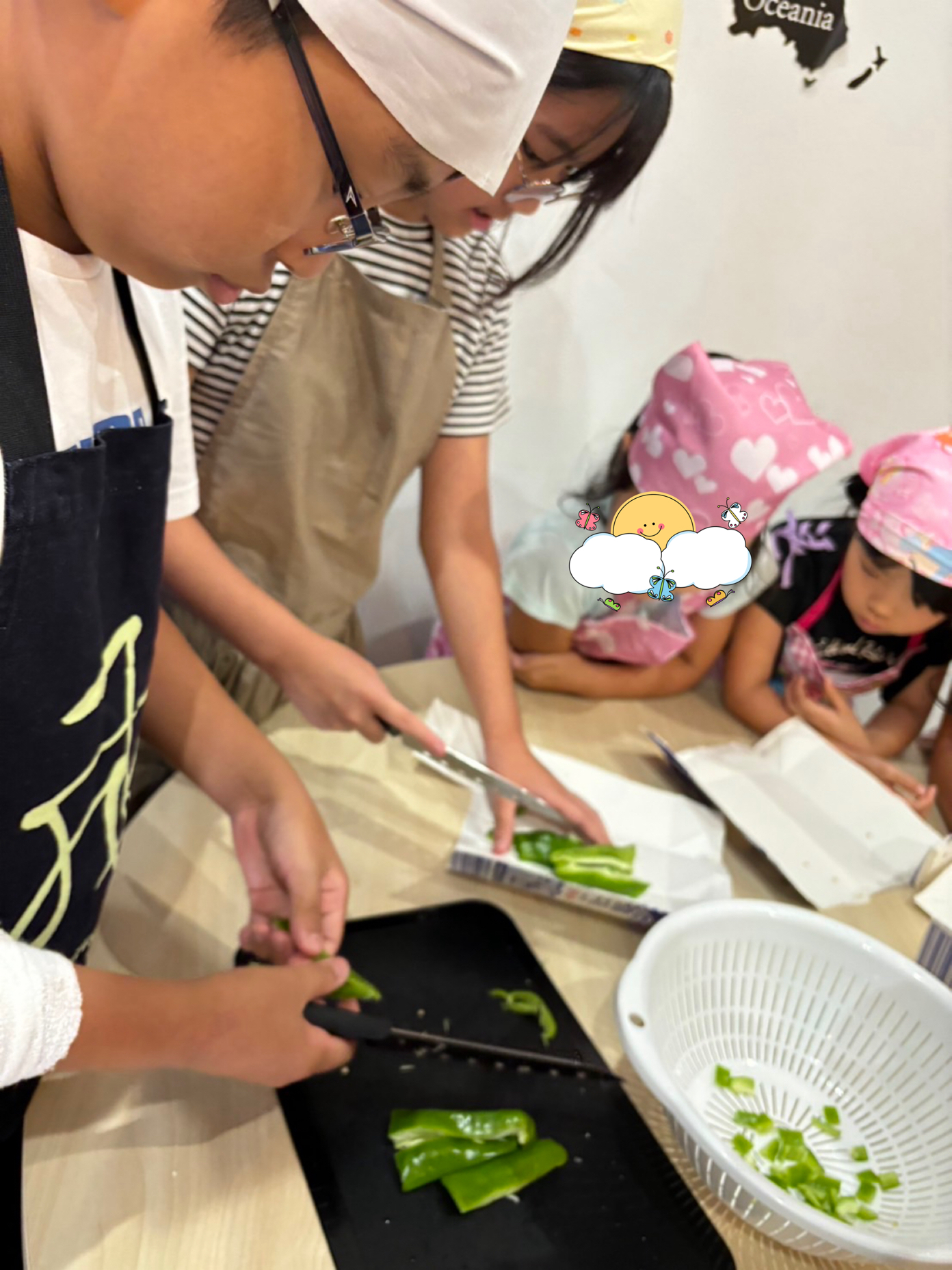 ピーマン🫑の種を取ったり、切ったり、キャベツもきざみましたよ。