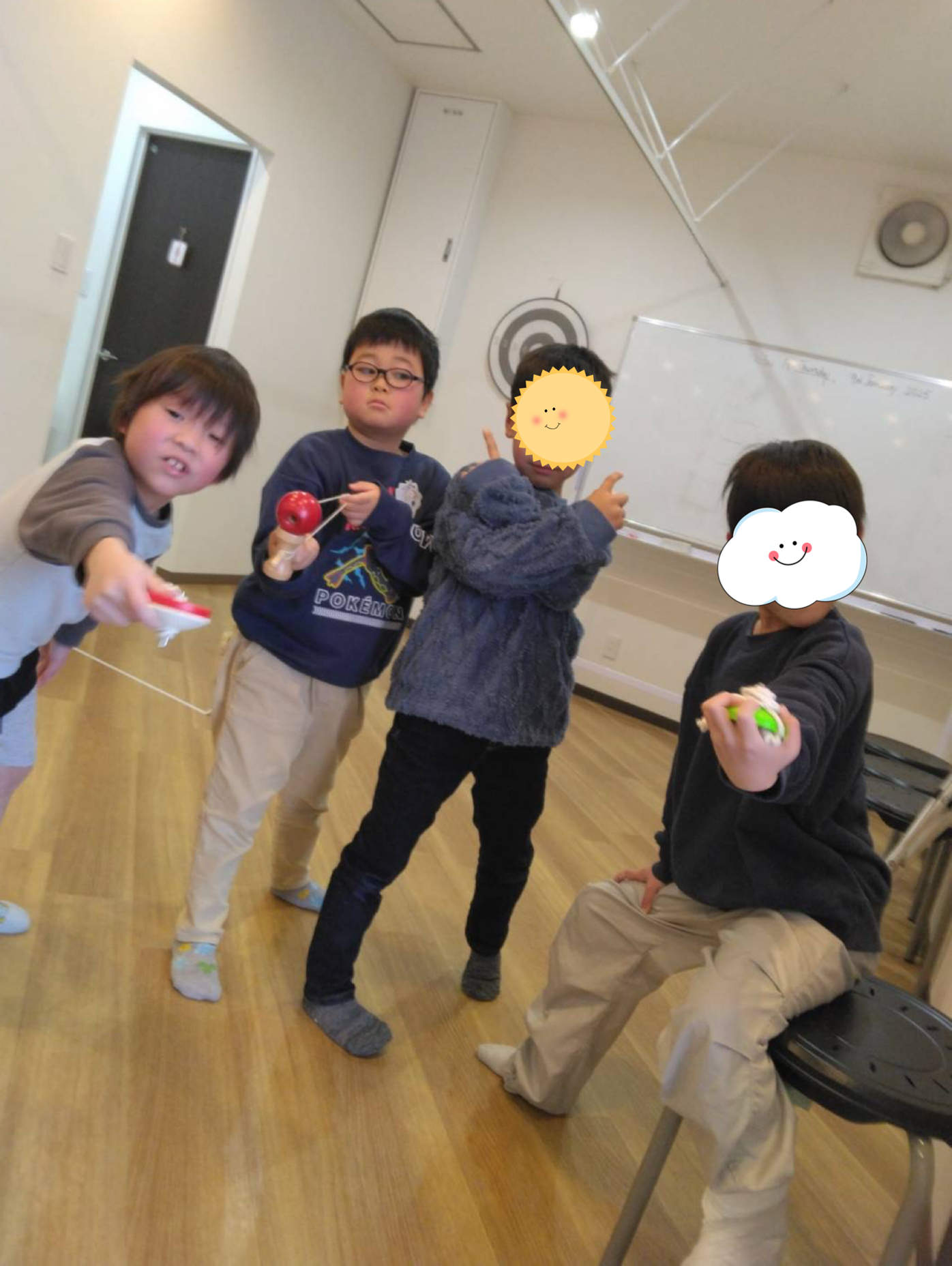 初めてけん玉で遊ぶお友だちもいて、遊んだ事のあるお友達が優しく教えてあげる姿も☺️