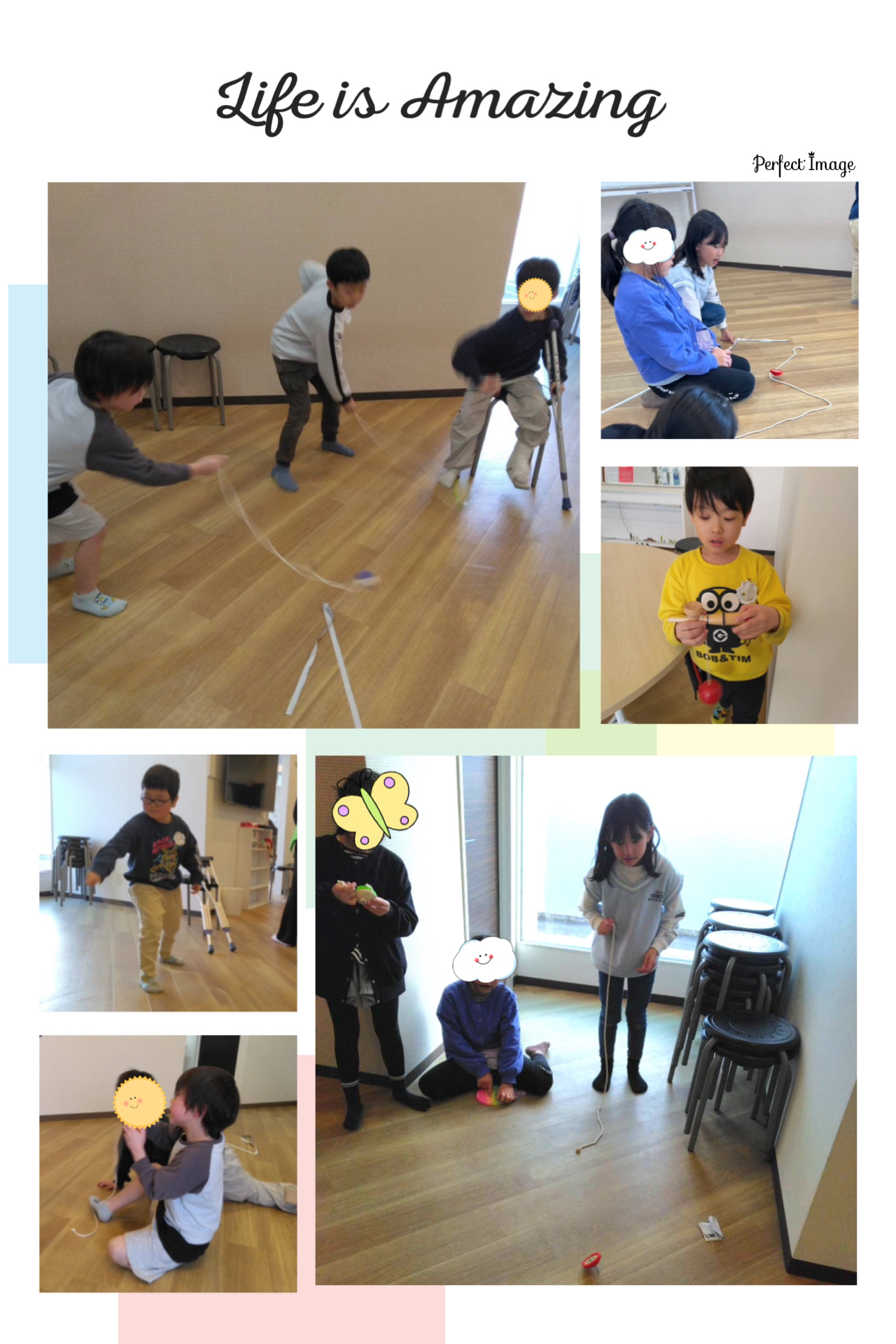 最初はうまくコマを回せなかったお友だちも何回も遊んでいるうちに上手になったので…