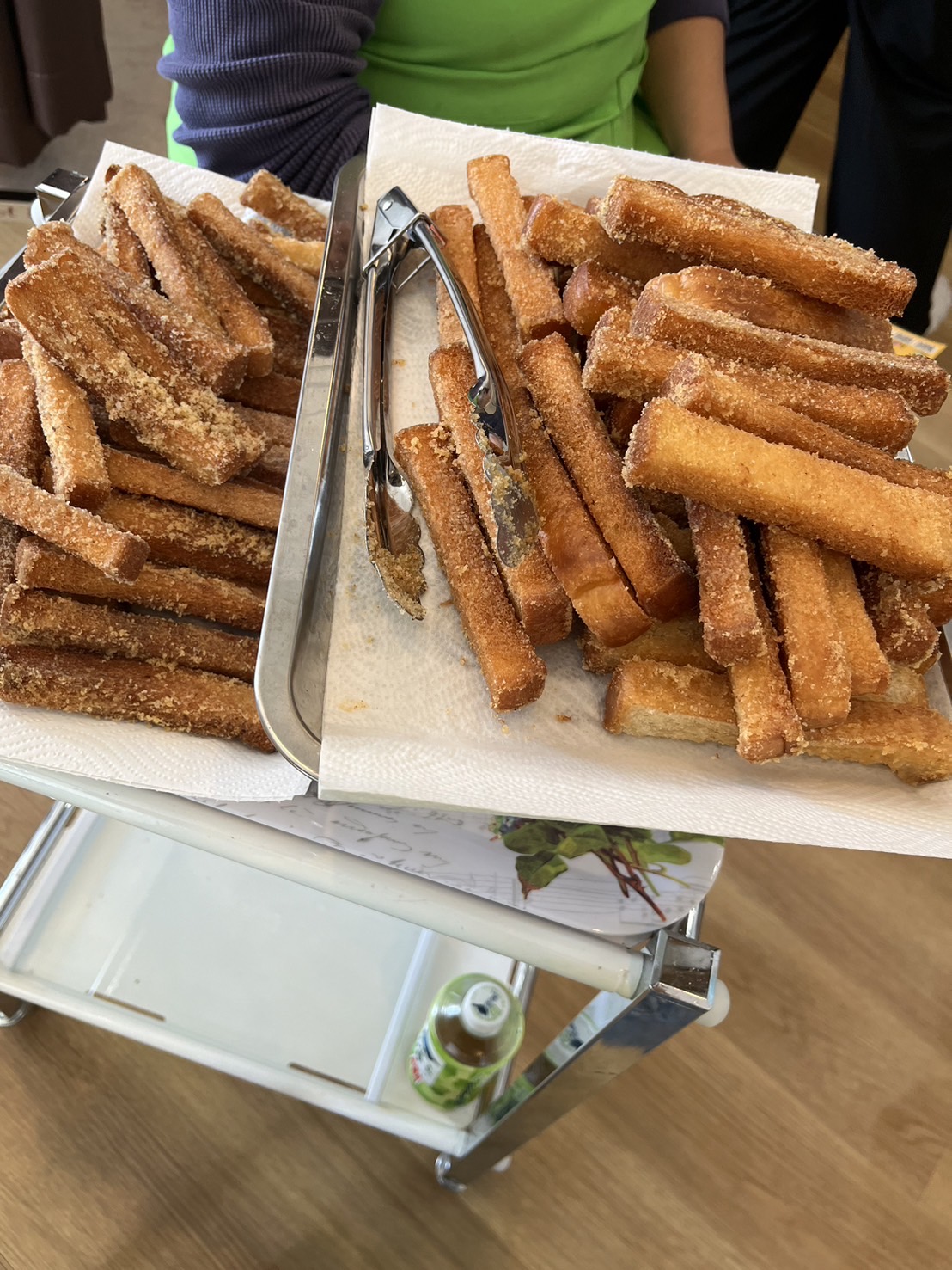 食パンを細く切って油で揚げてきな粉と砂糖をまぶしたおやつですが、子ども達からは大好評!🍞