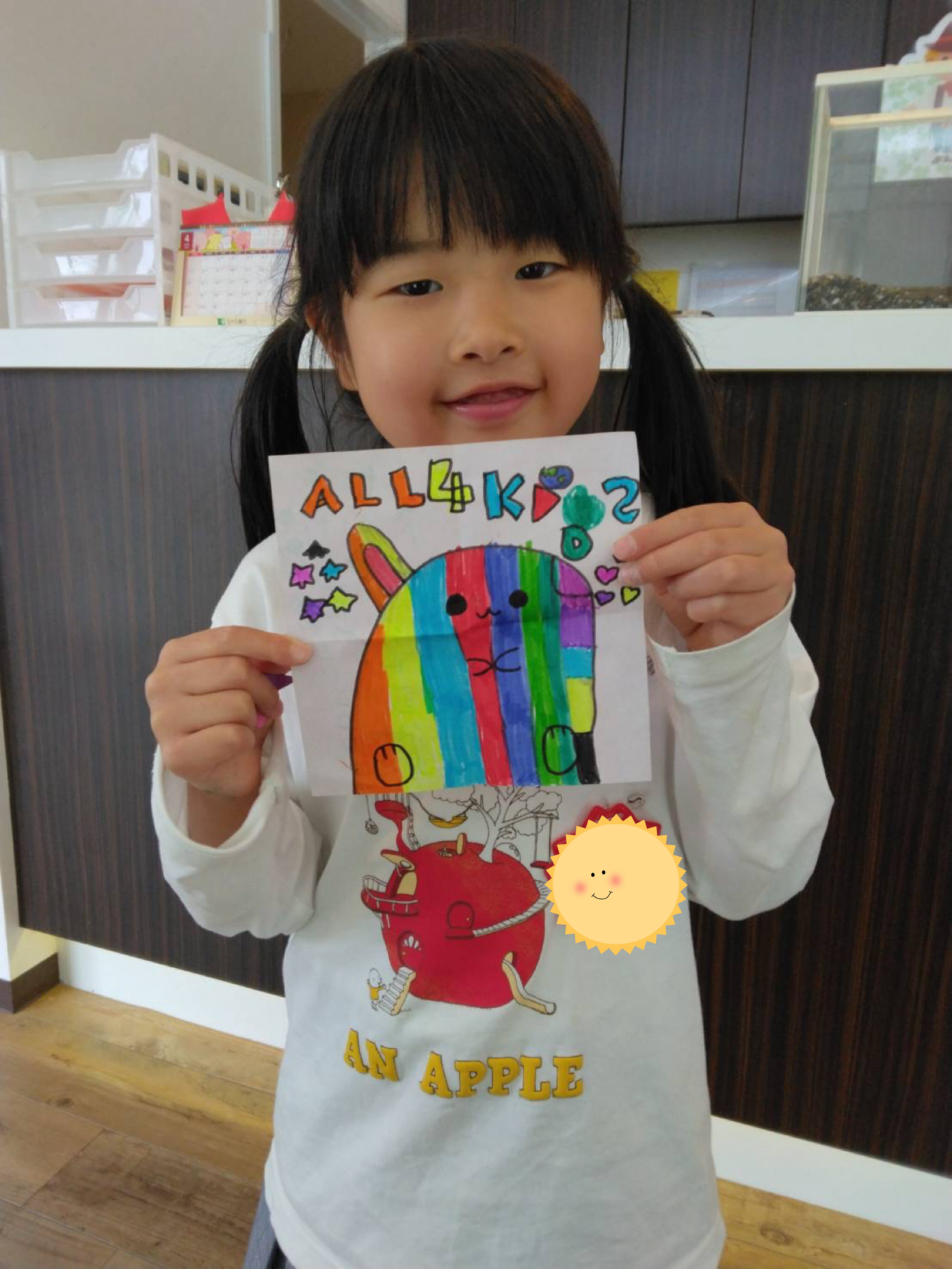 こちらのお友達は先生達のエプロンを見て『ALL4KIDS』の文字を描いてくれました!!