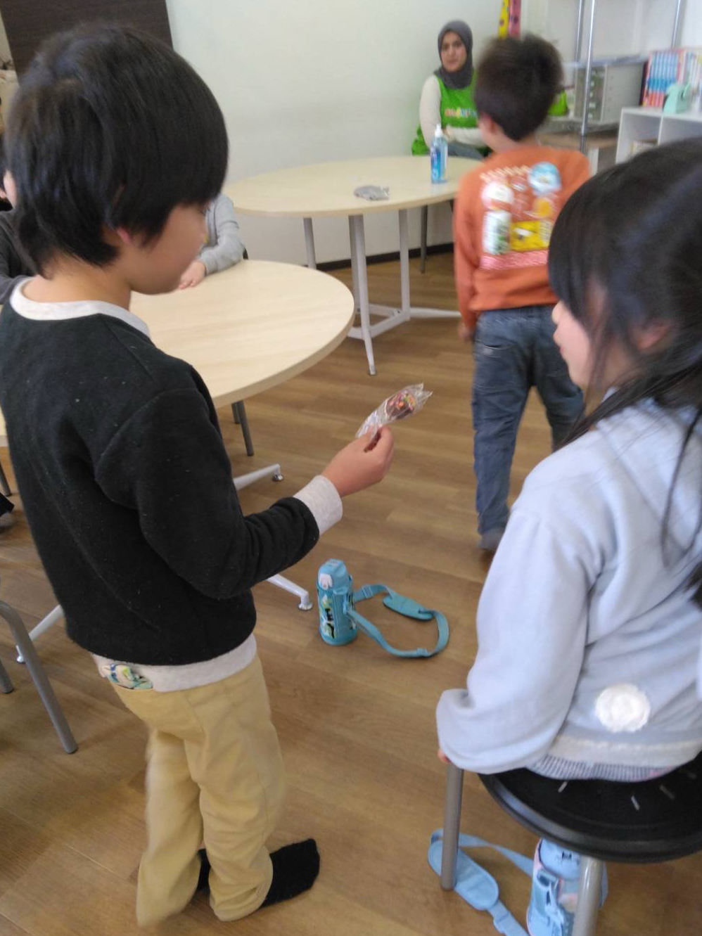 おやつの前、男の子たちから女の子達へお菓子のプレゼントが🎁