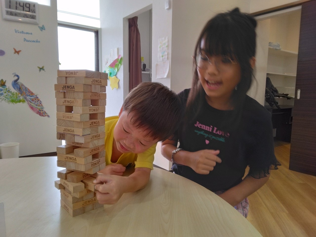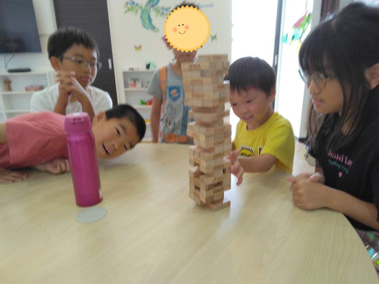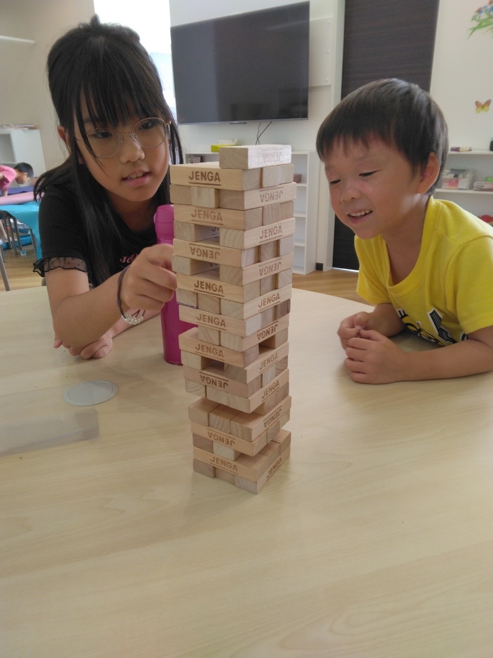 1年生と3年生のお友達はジェンガを楽しんでいましたよ