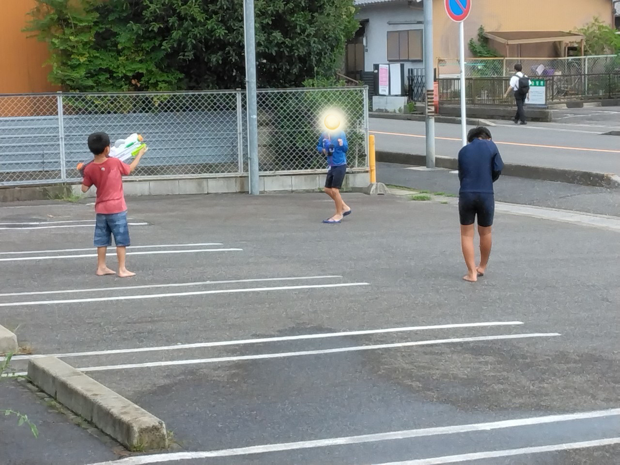 お家から専用の大型の水鉄砲を持参してきています(笑)