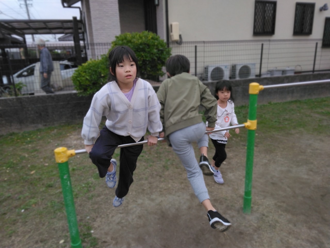 鉄棒も大人気でしたよ!腕の力が強いですね💪💪💪こちらは足掛け~~~!ツバメみたい!!