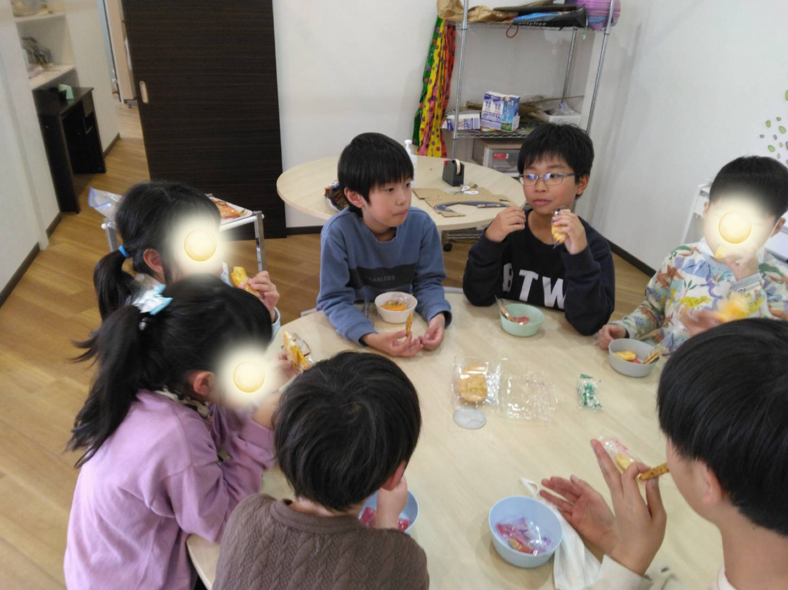 三年生の宿題が終わったらみんなでおやつタイム。