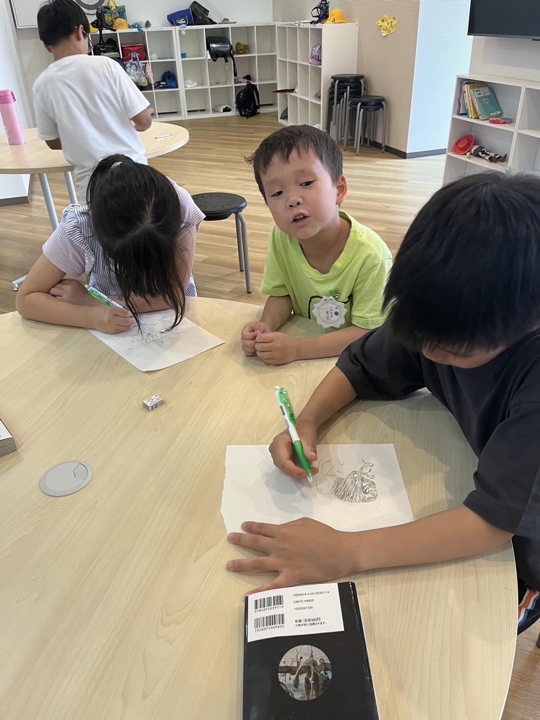 今日のアフタースクールでは、まずはの第1弾のお化け屋敷の絵をみんなで考えました!