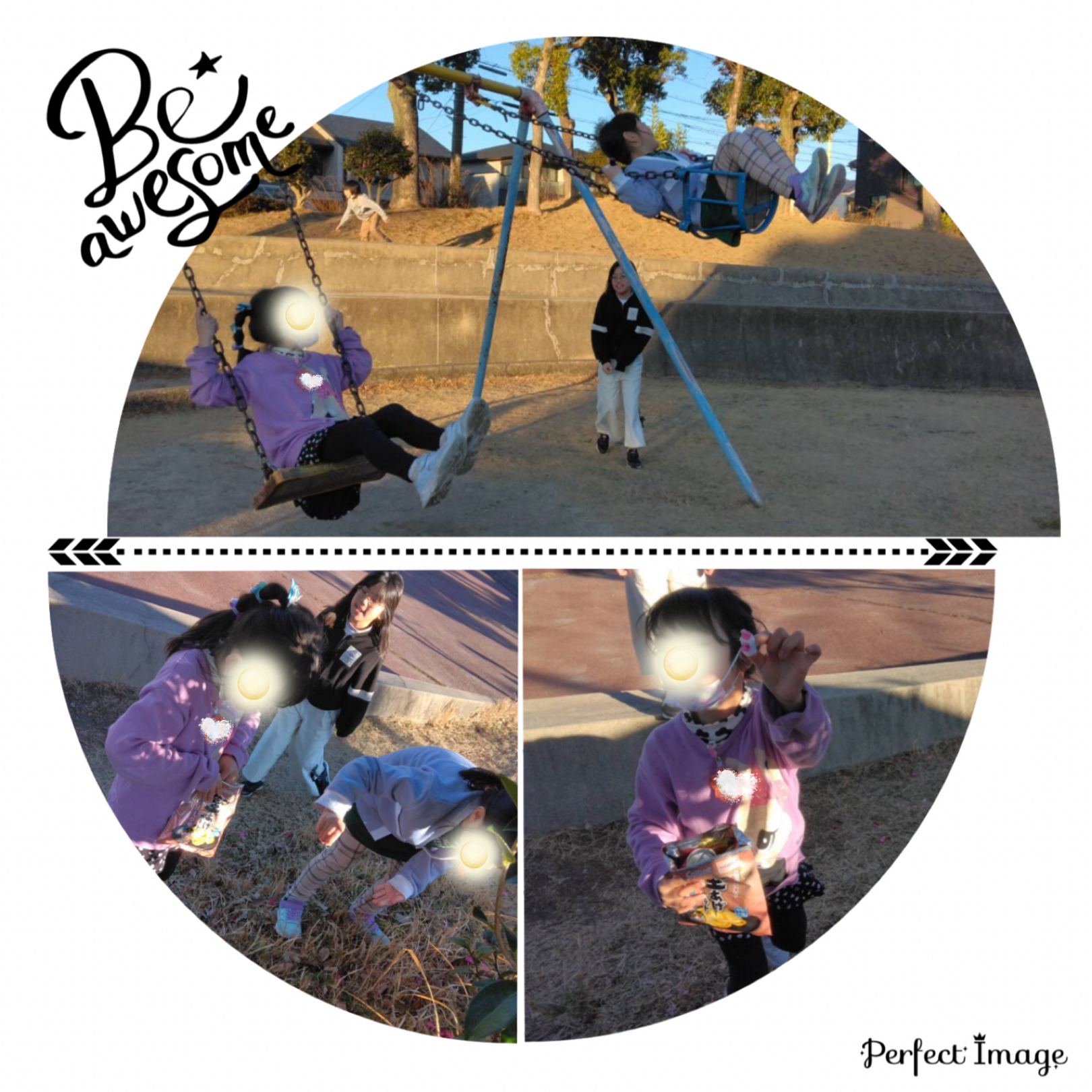 女の子達は、ブランコなどで遊んだ後に自主的に公園のゴミ拾いを始めました!
