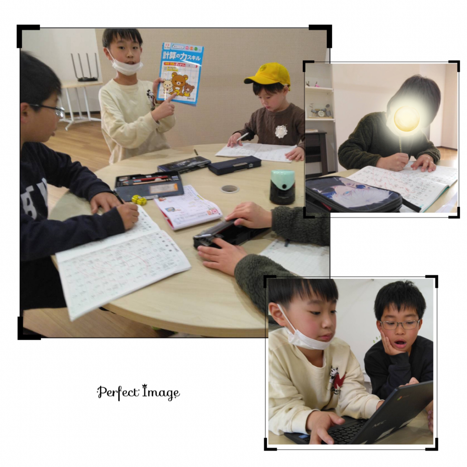 などと楽しそうに、お話をしながら宿題に取り組む子供たちです。