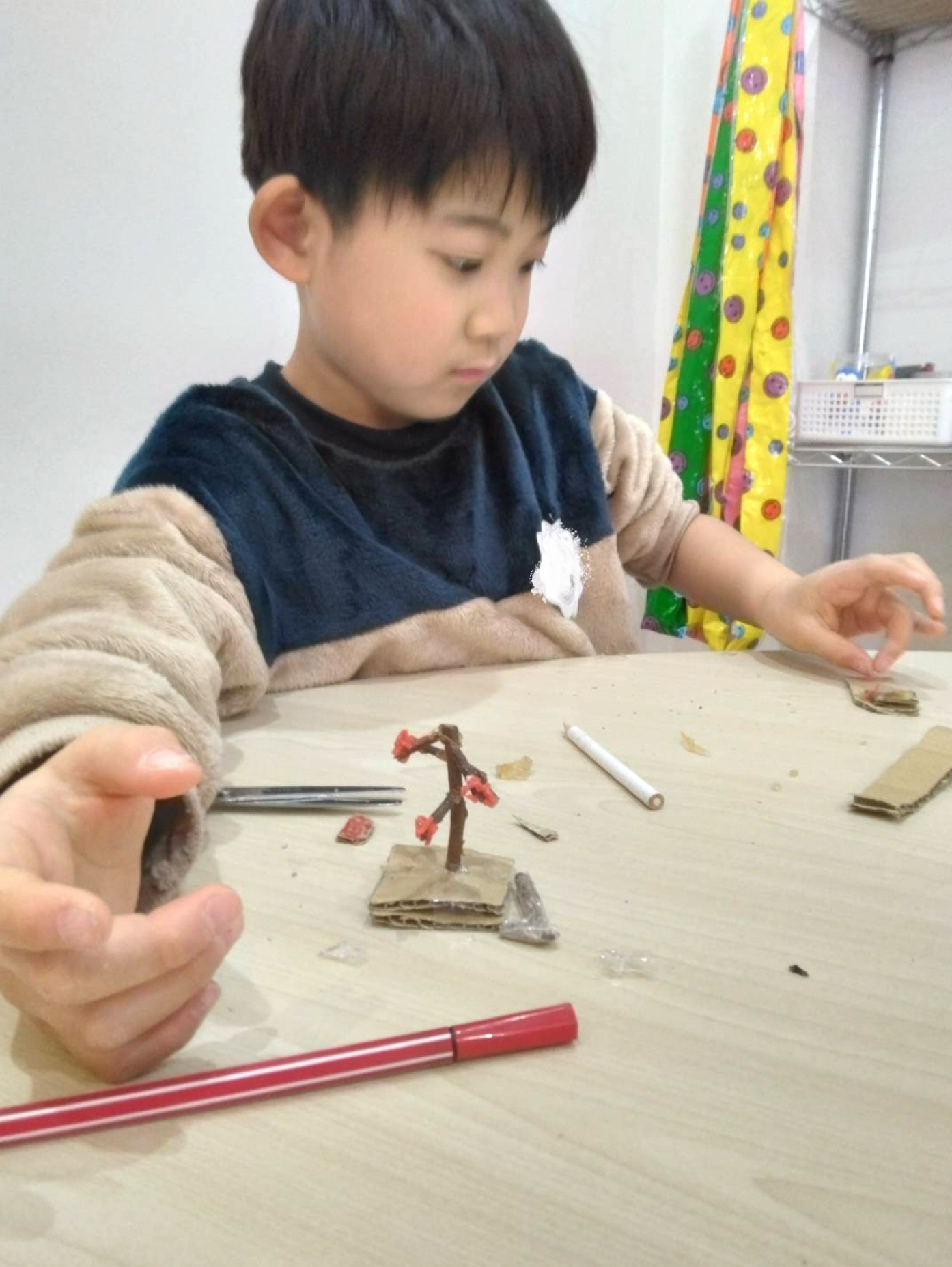 こちらでは、工作を始めたようです😊