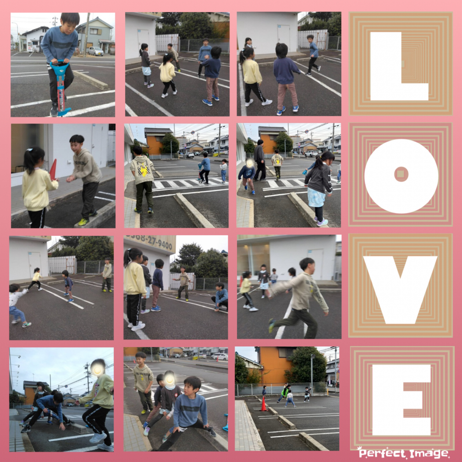 たっぷり食べた後は久しぶりに駐車場で追いかけっこをしましたよ。