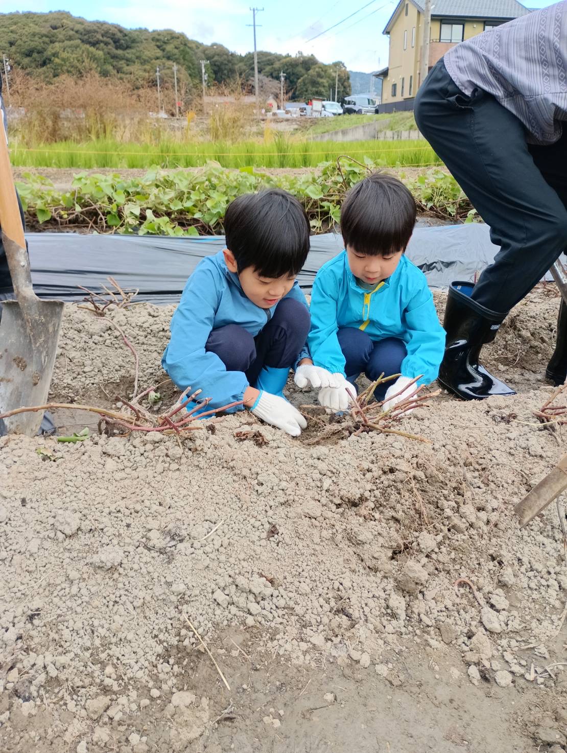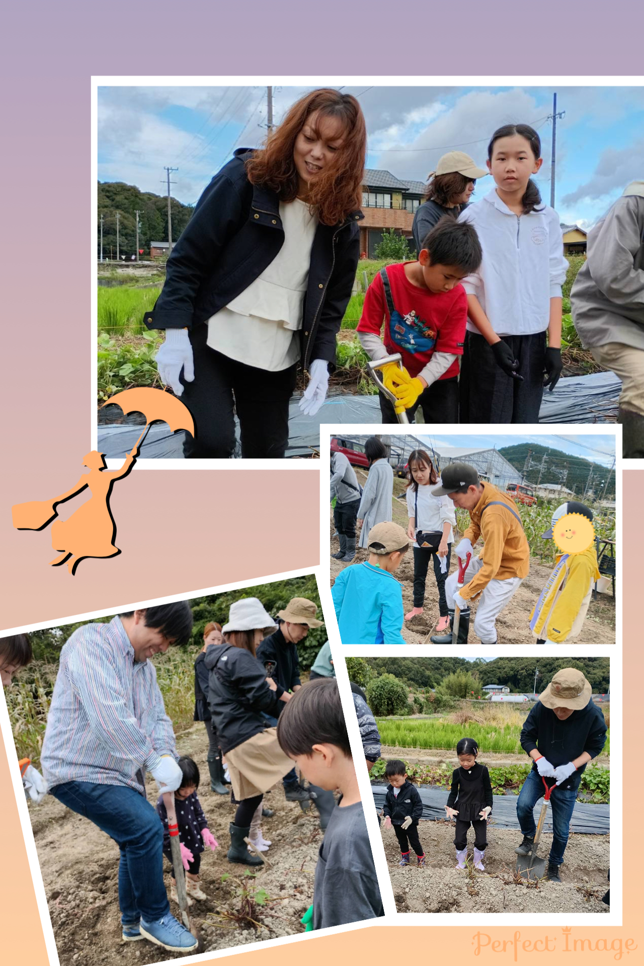 ファームの人からお芋の上手なほり方を聞いたらスタートです。