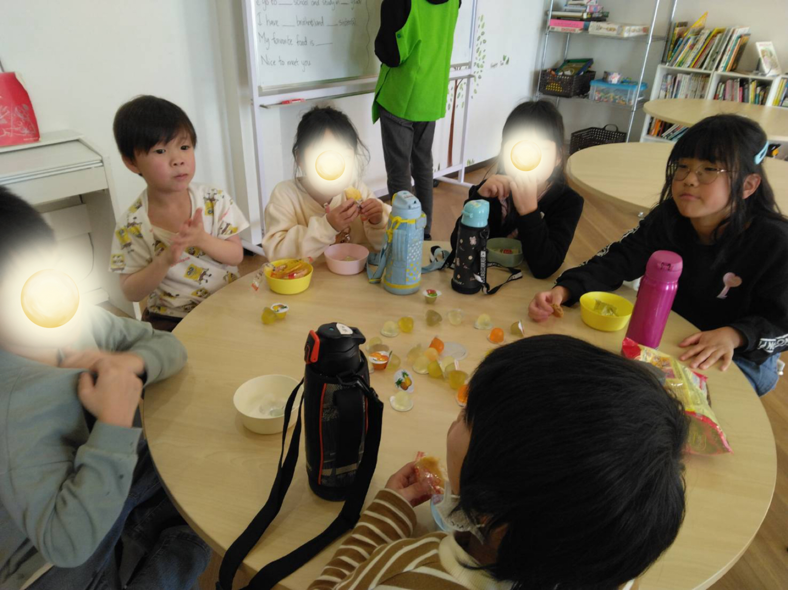 本日は英検JRのテストが行われる日でもあったので、おやつタイムにそのことを伝えました。