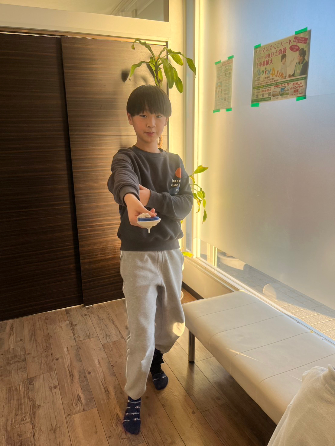 宿題を済ませたら男の子はコマ回し!😆どちらが長い時間回せるのか勝負していましたよ😄