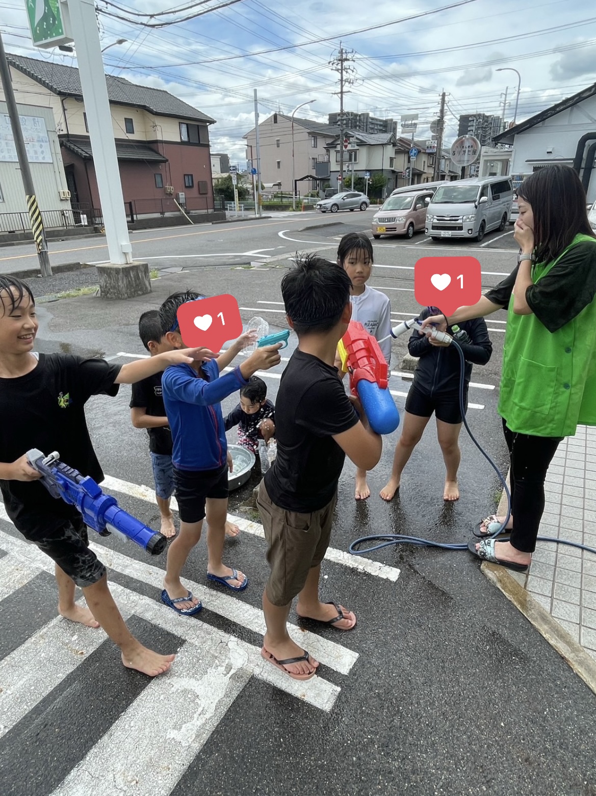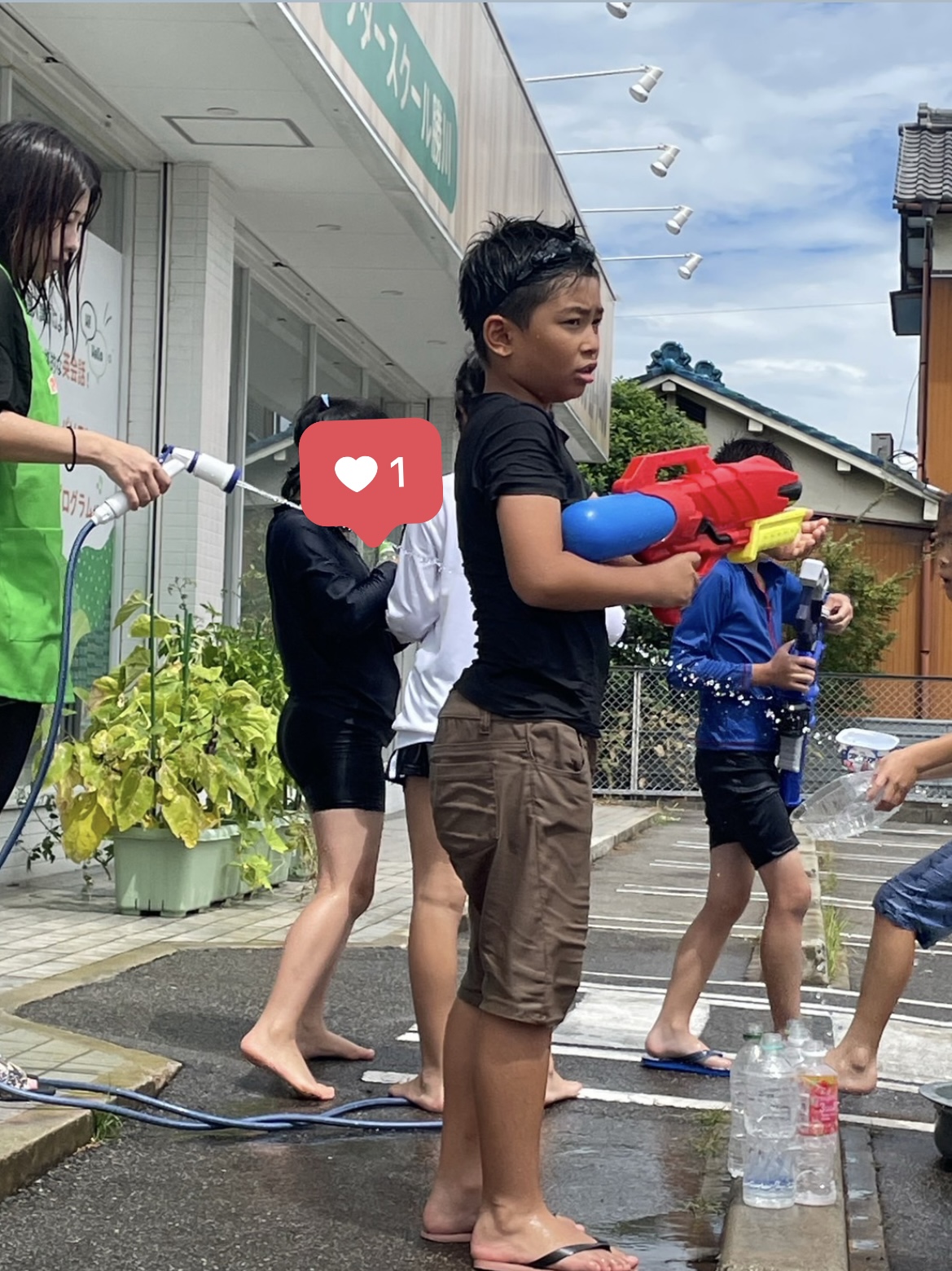 今日は水遊びの日ではないですが、子供たちからリクエストが多かったのと水鉄砲を持ってきてくれた子が何人かいたので