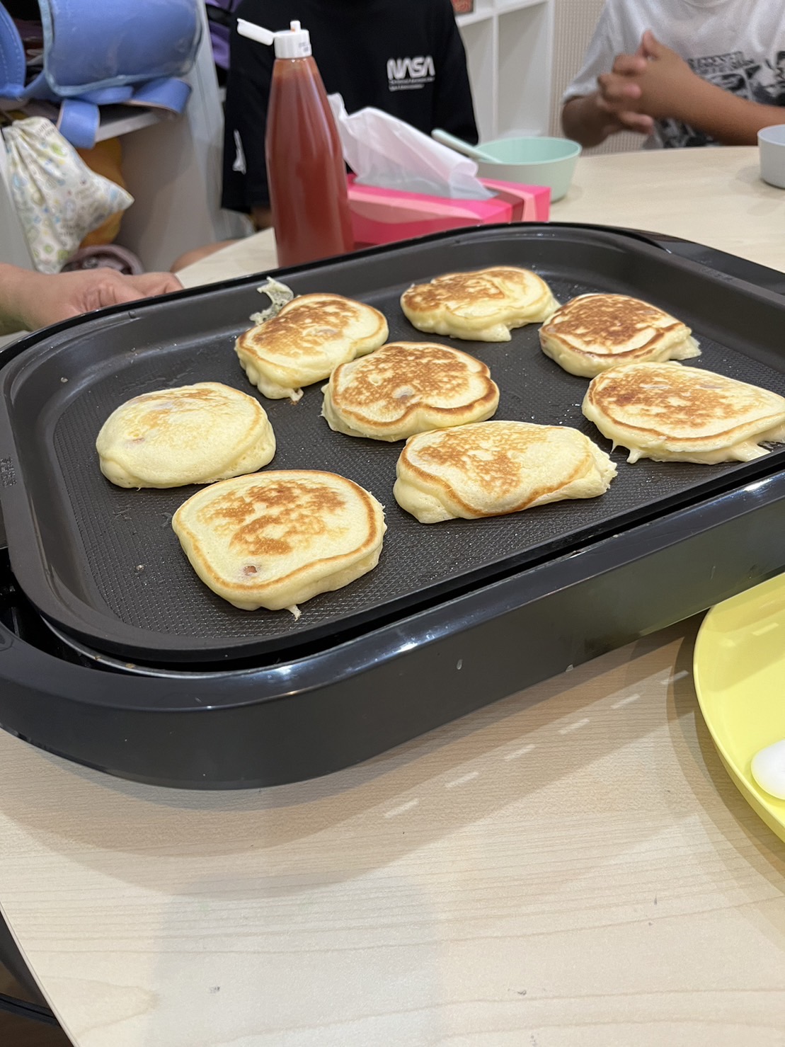 中身は、ホットケーキミックスにウインナーとチーズを入れましたよ。