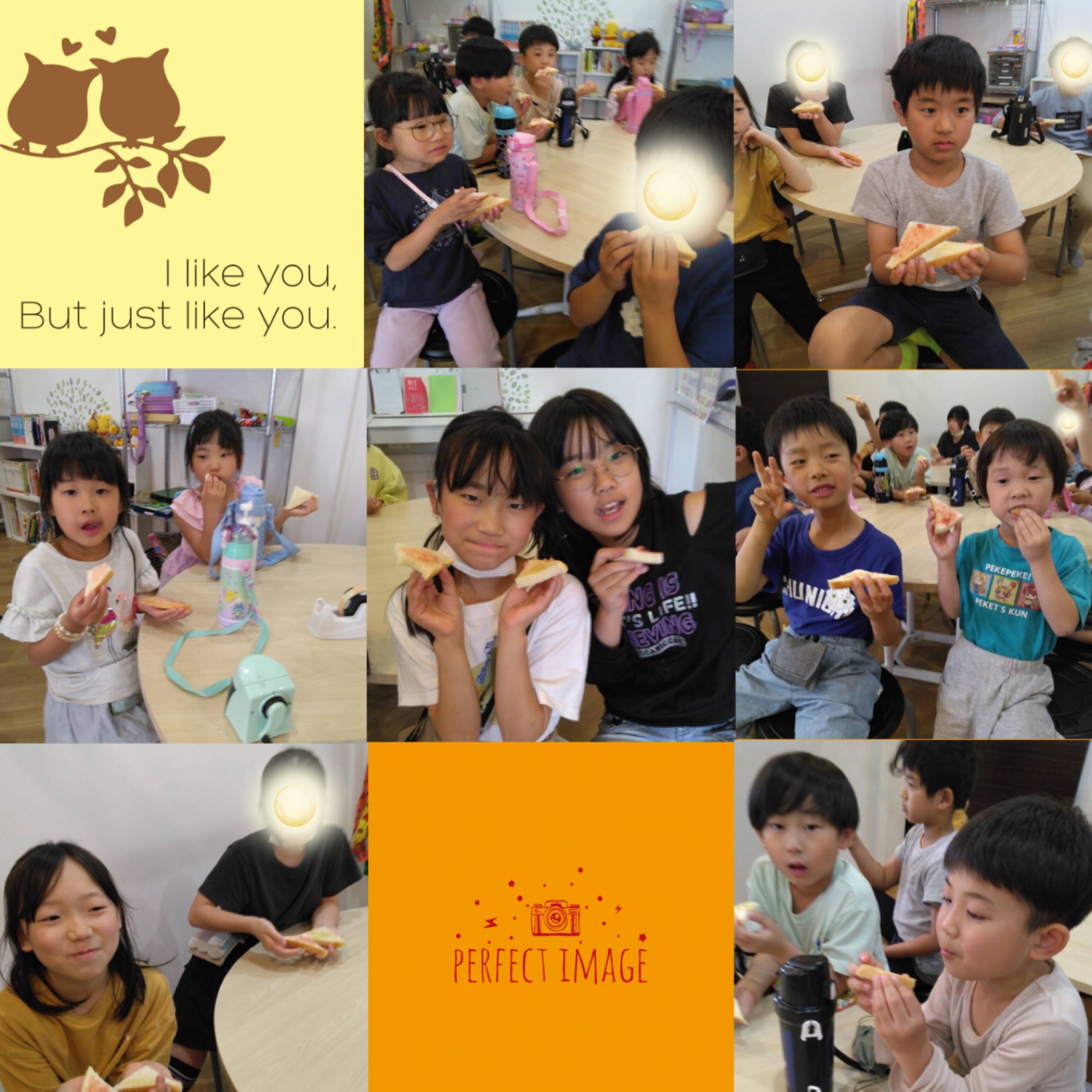 みんなの応援で勇気を貰ったのでしょう、しばらく手に持ったままだったイチゴのジャムサンド🥪に勢いをつけて口に入れたり、お茶を飲みながら全部食べ切っていました!😳