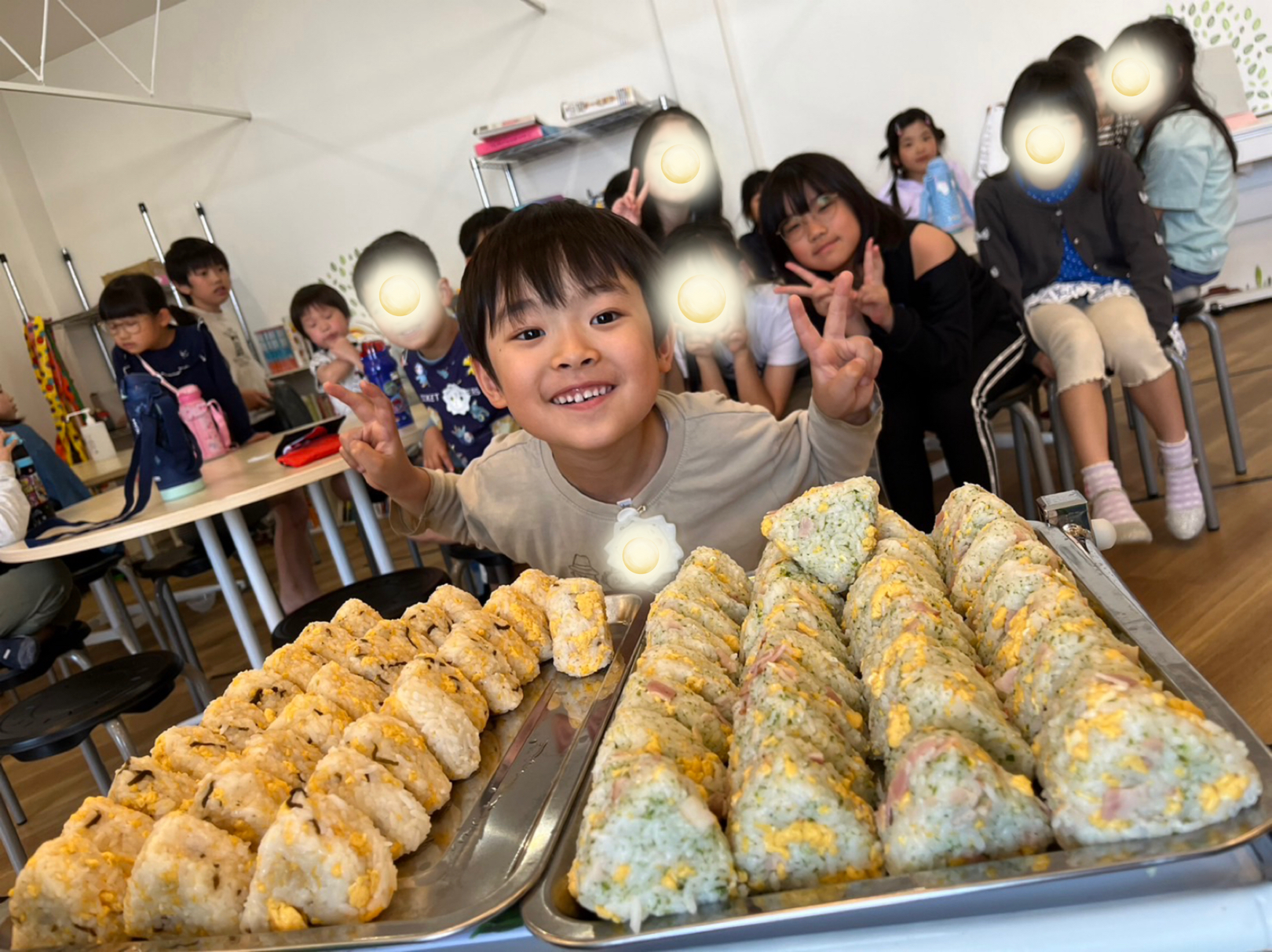 こちらは、炒り卵(ダシ味付き)に塩昆布&炒り卵・ベーコン・青のりのおにぎりです🍙