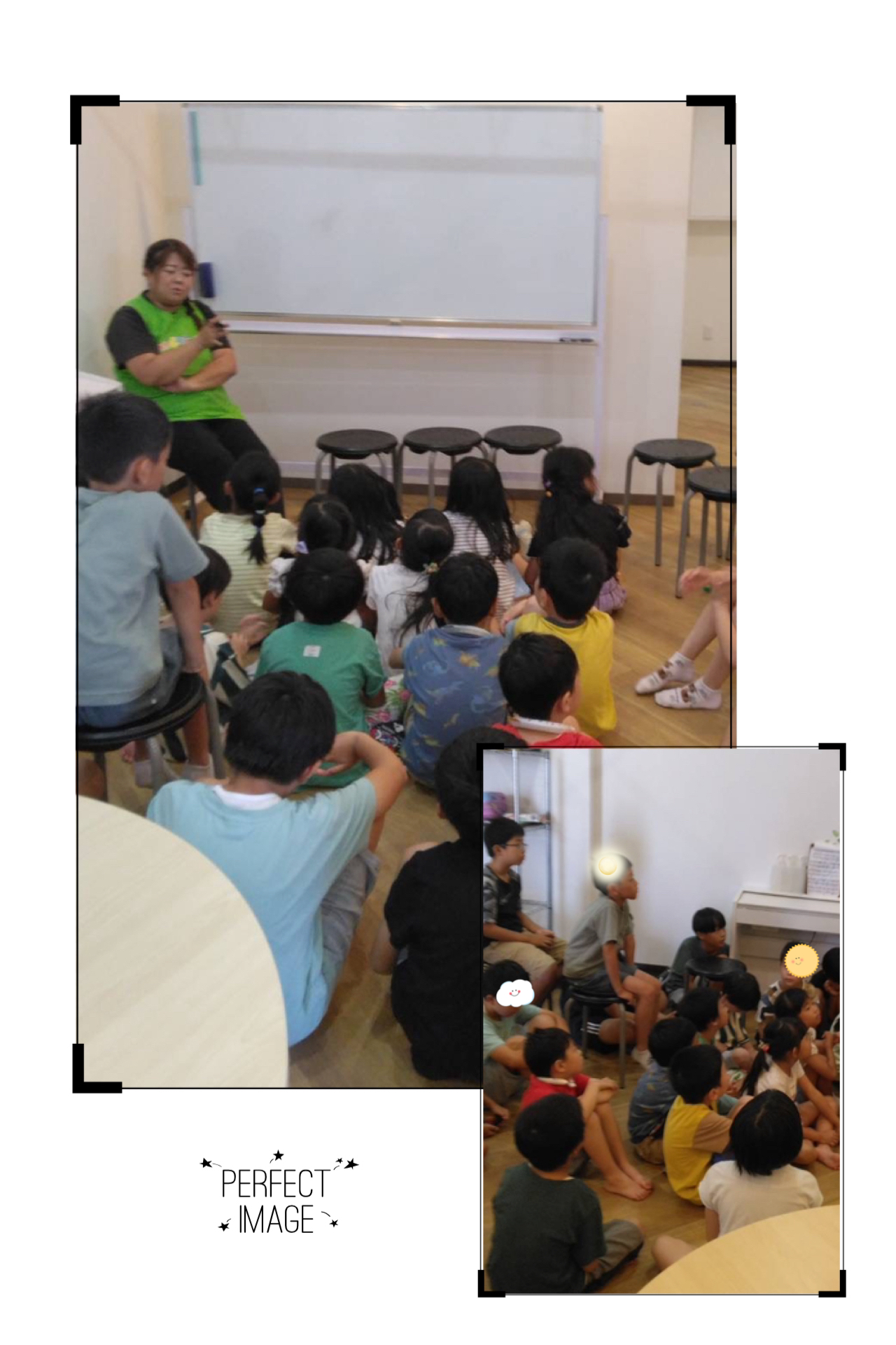 先生から大きな地震が起きたらまず自分の頭を守る事を教えて貰い、アフタースクールでは「花の木公園」が第一の緊急避難先になるというお話も聞きました。(第二は小野小学校になります)