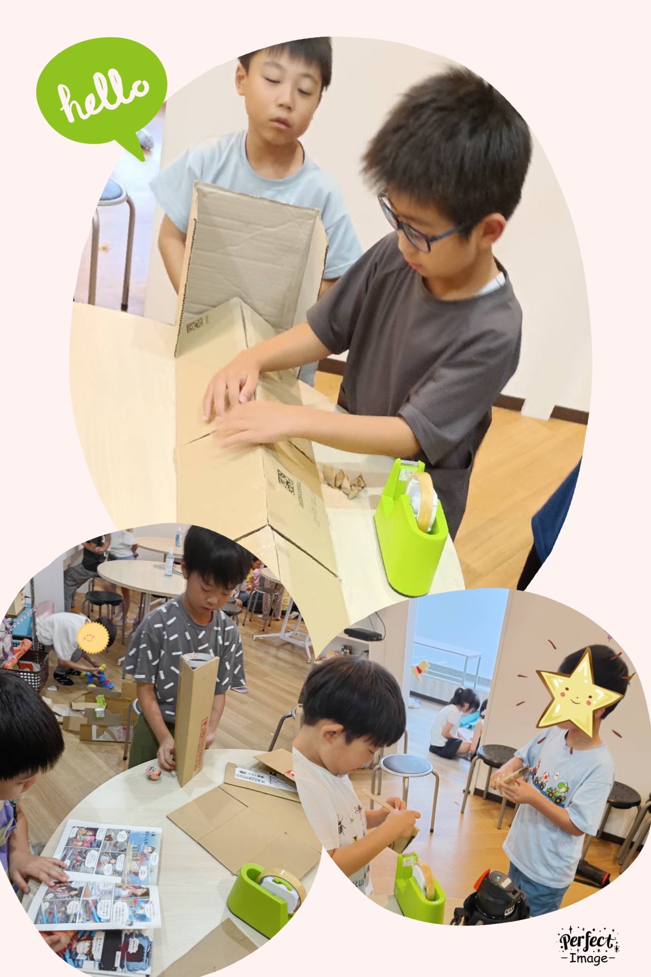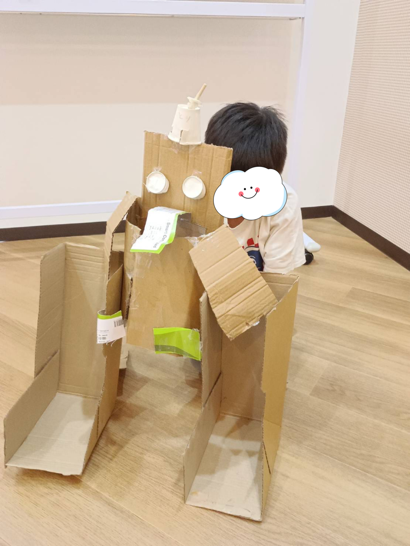 こちらの男の子たちはダンボールでロボットや、