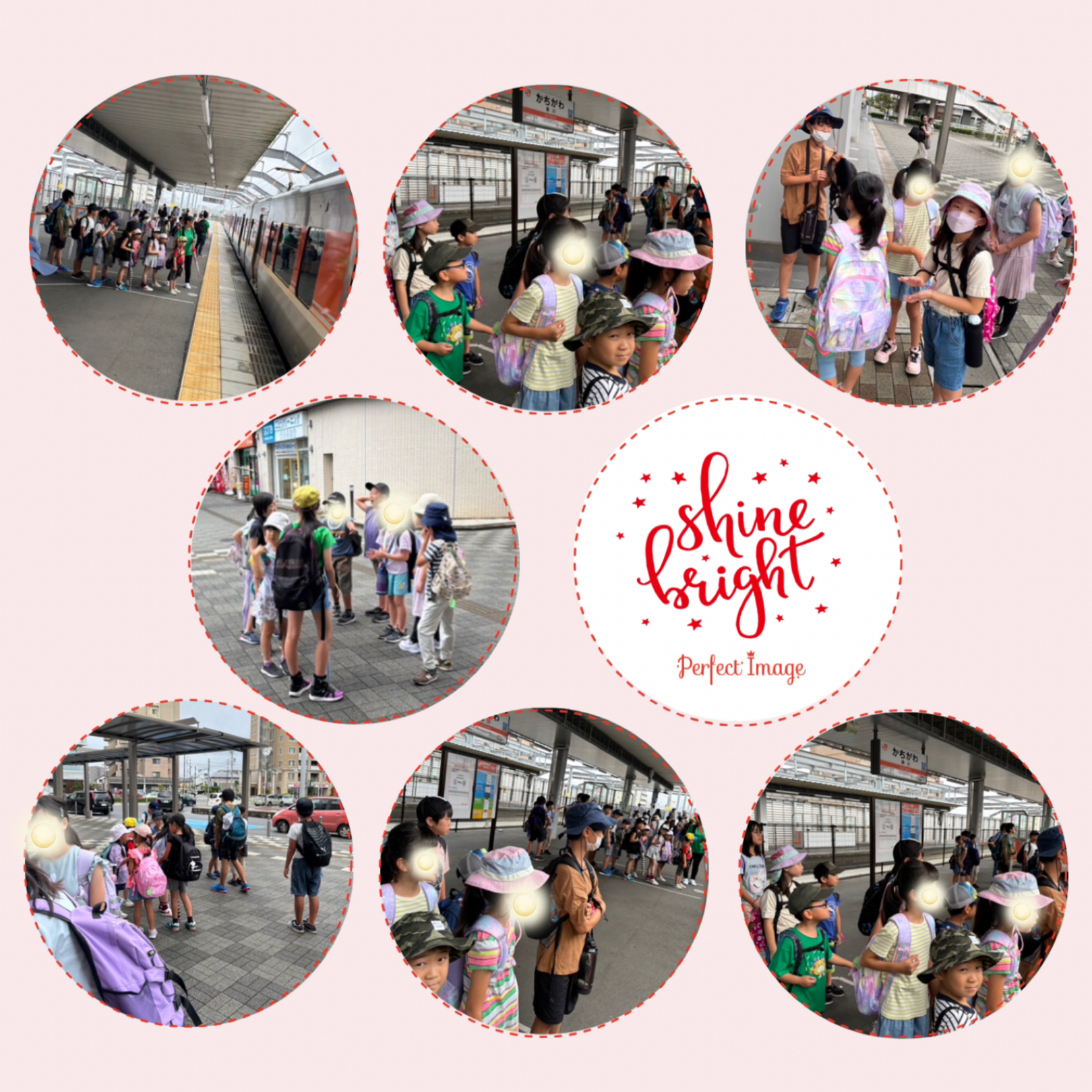 まずは勝川駅で集まります。高学年を中心に、ピンク、黄色、ブルーの3チームに分かれて