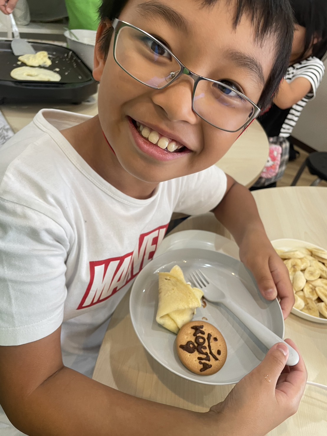 そのあとはクレープを焼いて、自分たちでバナナやチョコクリームやホイップクリームをトッピングして皆で食べました。