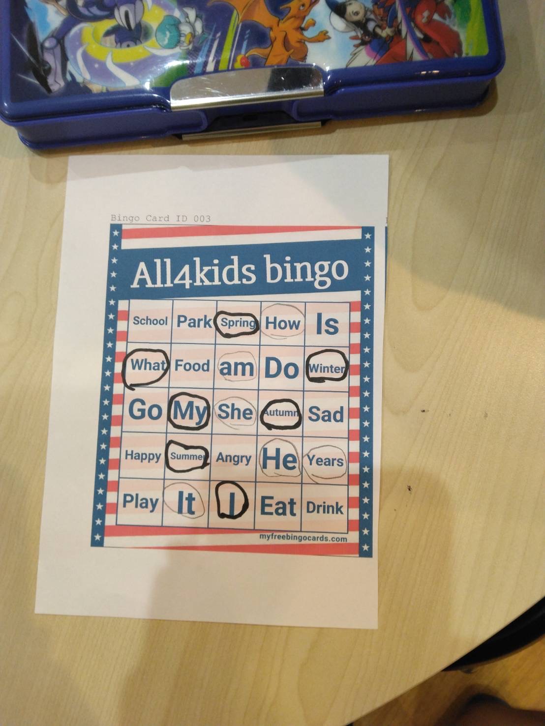 単語のスペルが分かっているのかどうか…という感じもありましたが、大盛り上がりで楽しくBINNGOができました。
