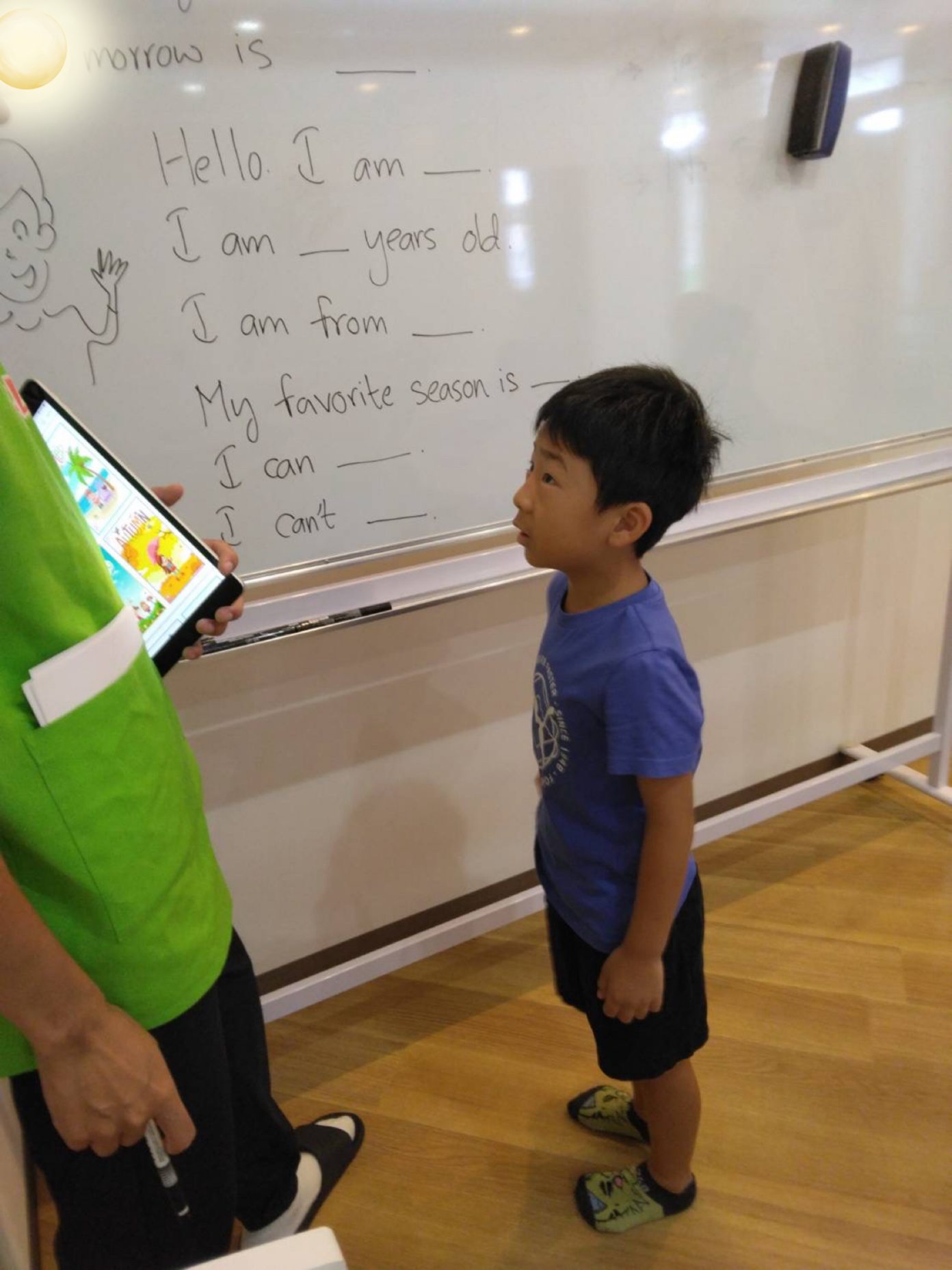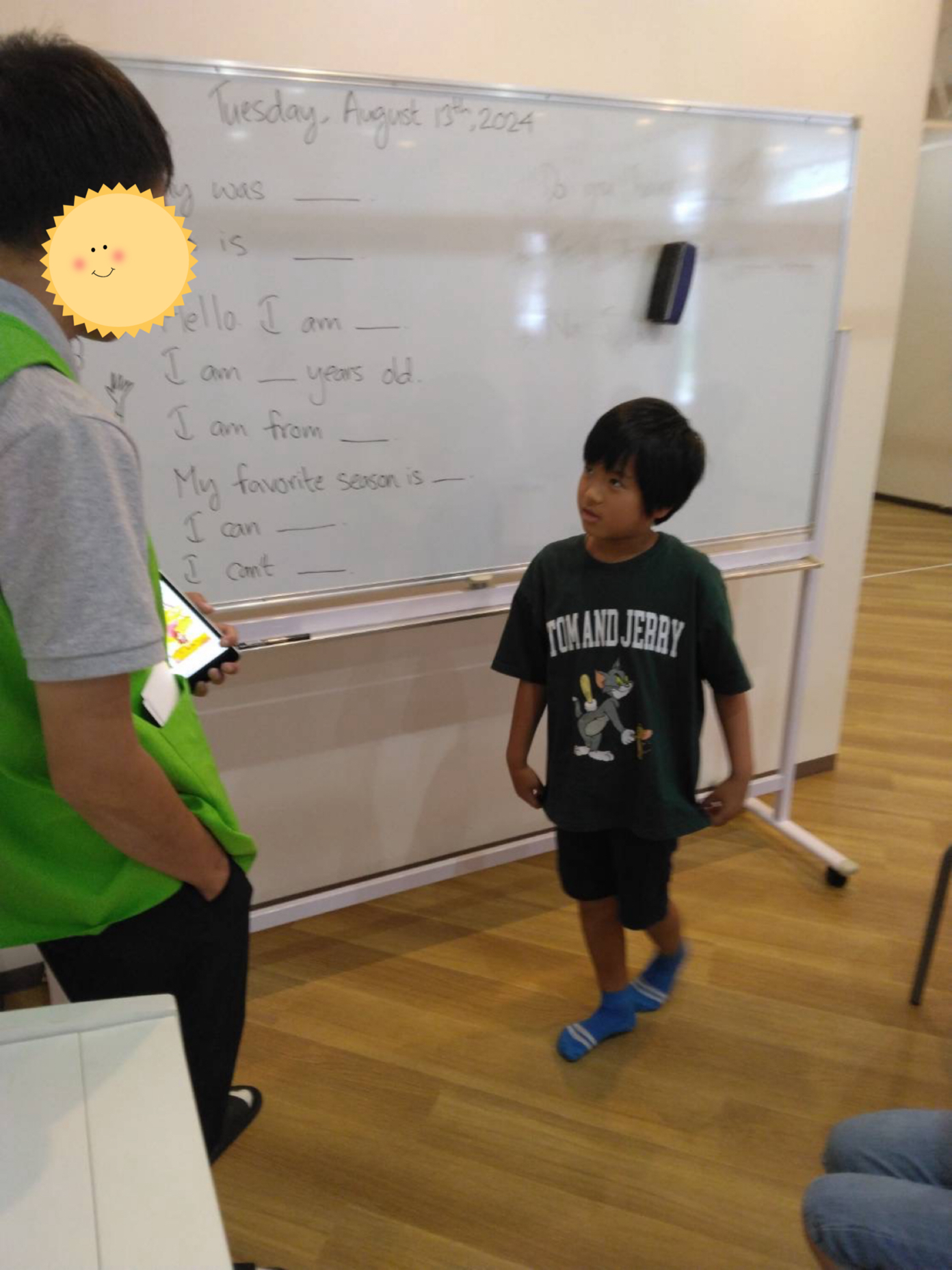 朝のイングリッシュタイムでは、いつものように前に出て答えます。