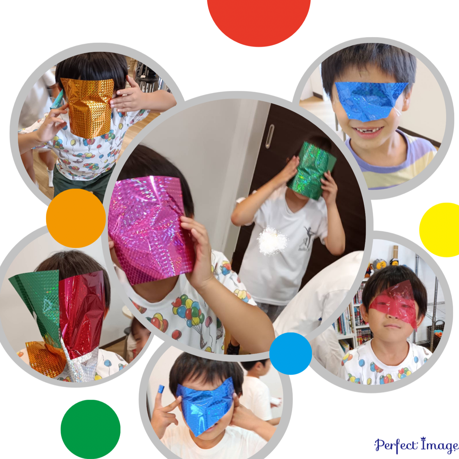 カラフルなキラキラ折り紙を通して見ると