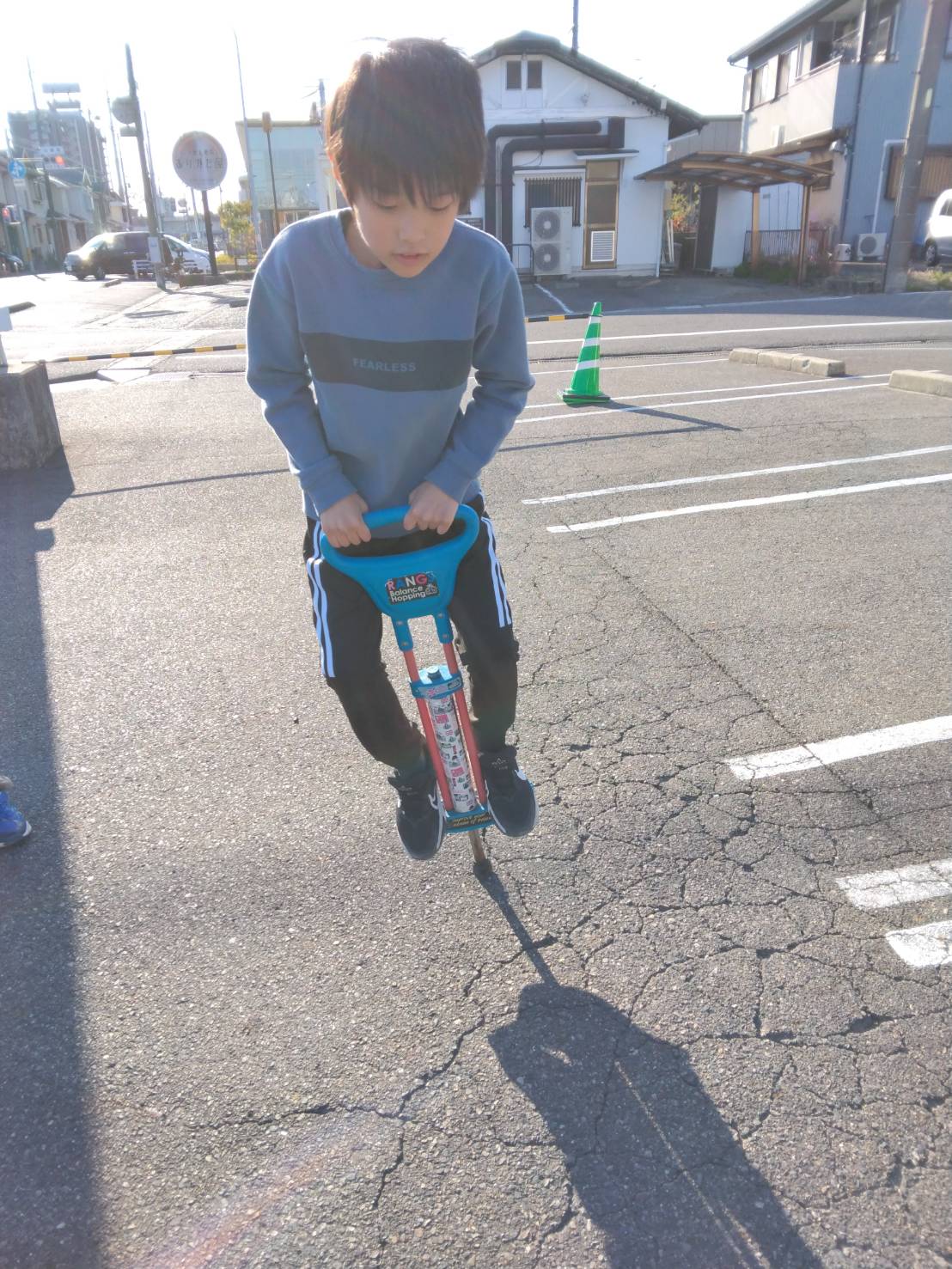 こちらの男の子は鬼ごっこの休憩タイムにホッピングに挑戦中!