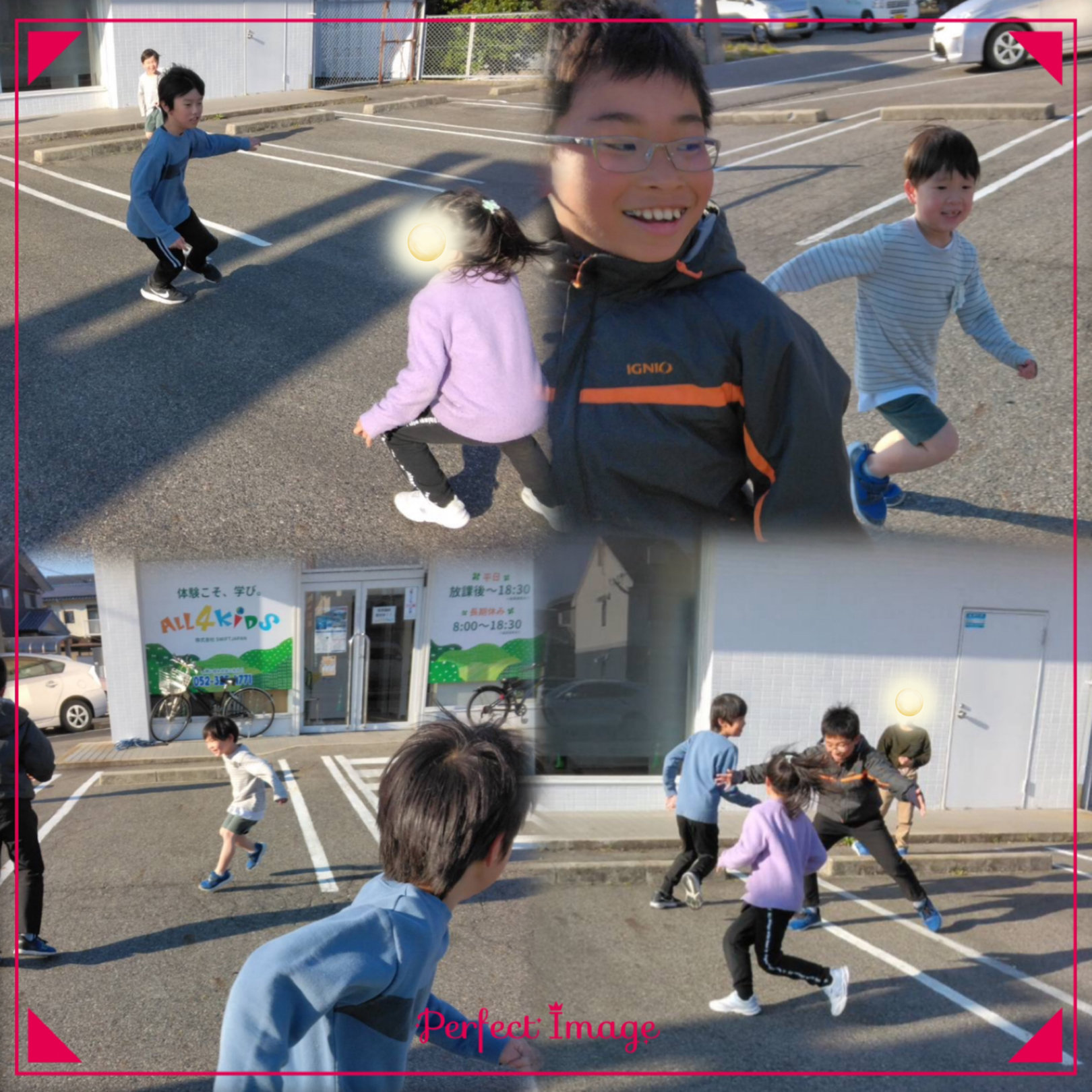イングリッシュタイムの後は子ども達のリクエストで駐車場で鬼ごっこ👹をして遊ぶ事に…