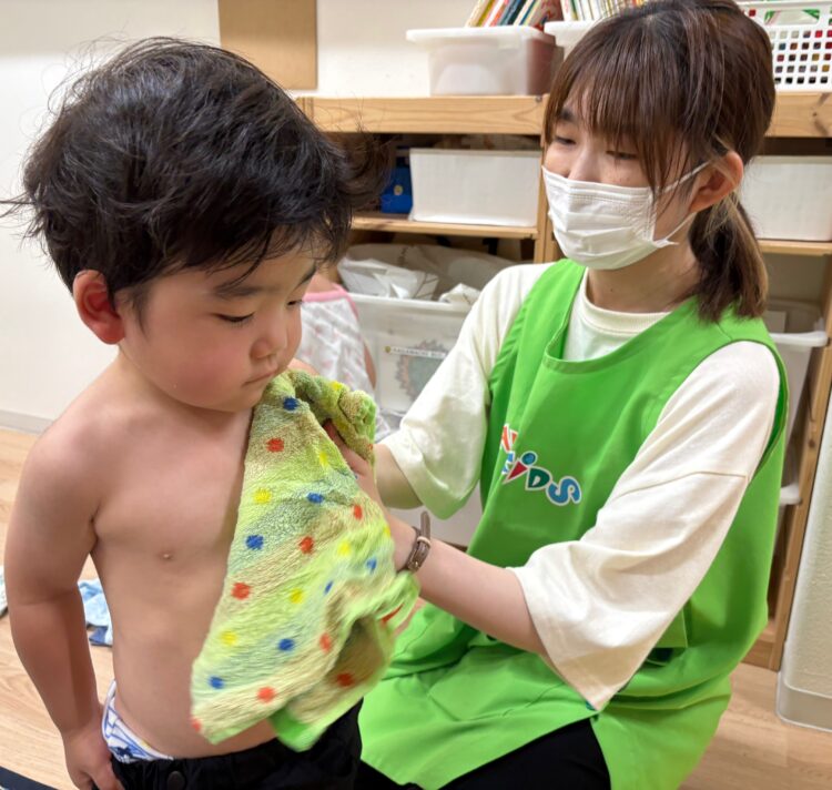 身体を拭いていると