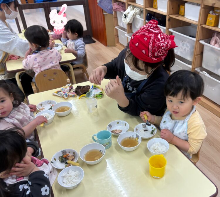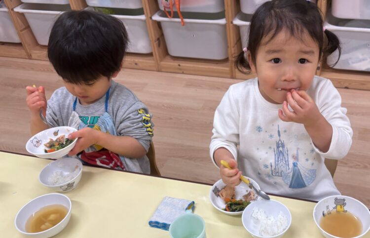 次年度の進級に向けて、大きいクラスと一緒に食事をしています🍚