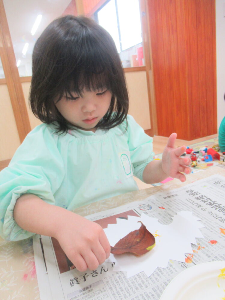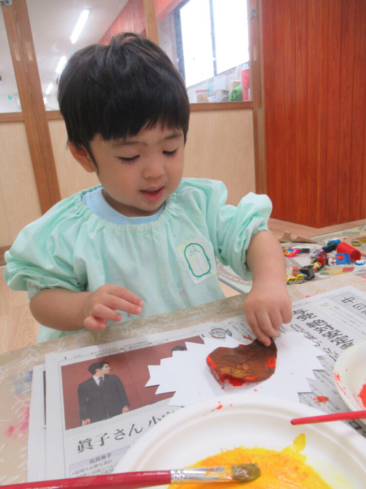 落ち葉を使ってのスタンプです。
