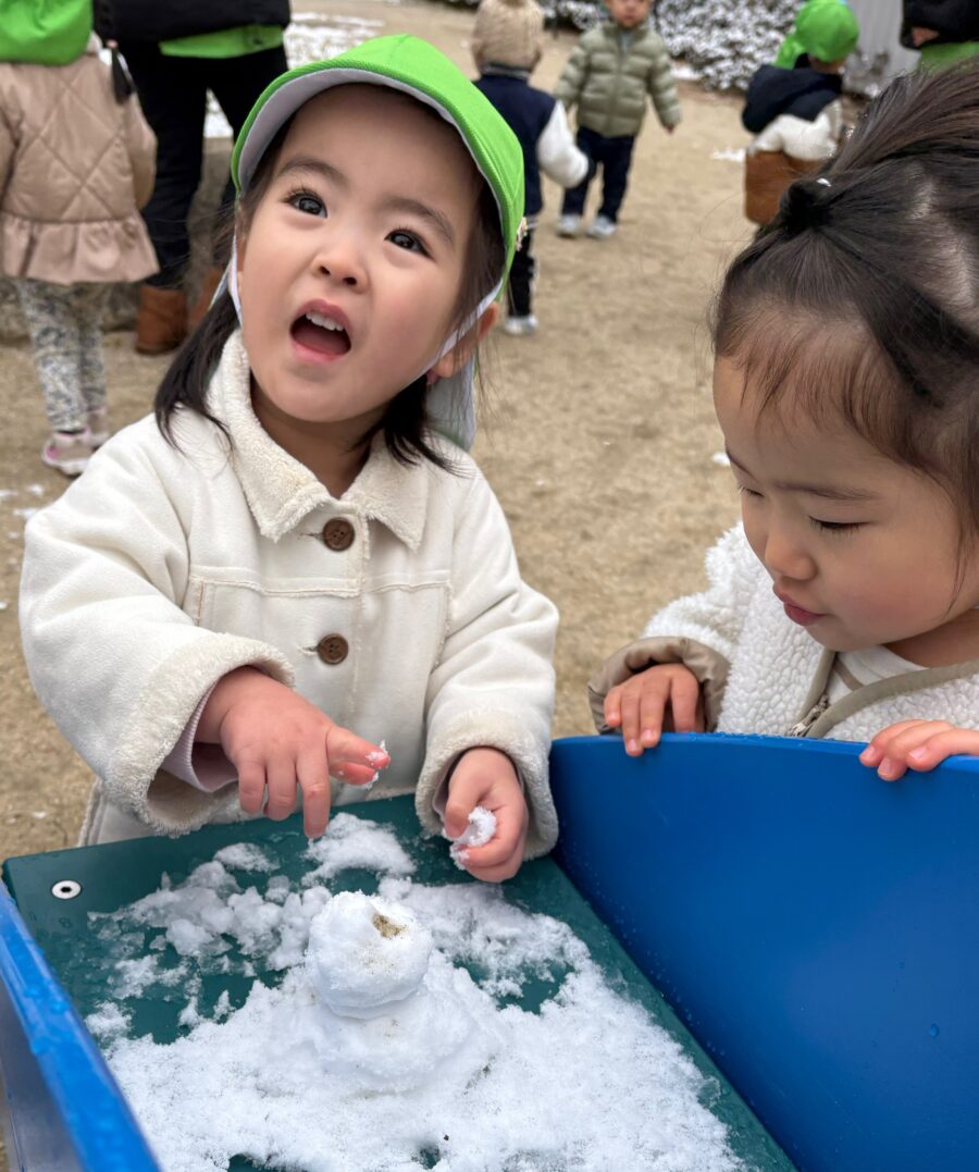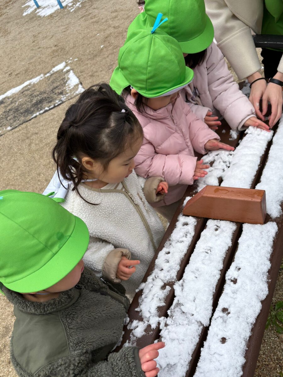 冬を楽しむ、雪遊びは目で見る・触ってみる・雪の匂いを嗅ぐ・雪の音を聞く・雪の性質を知るなど、多くの感覚を感じとれます。