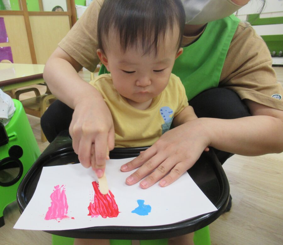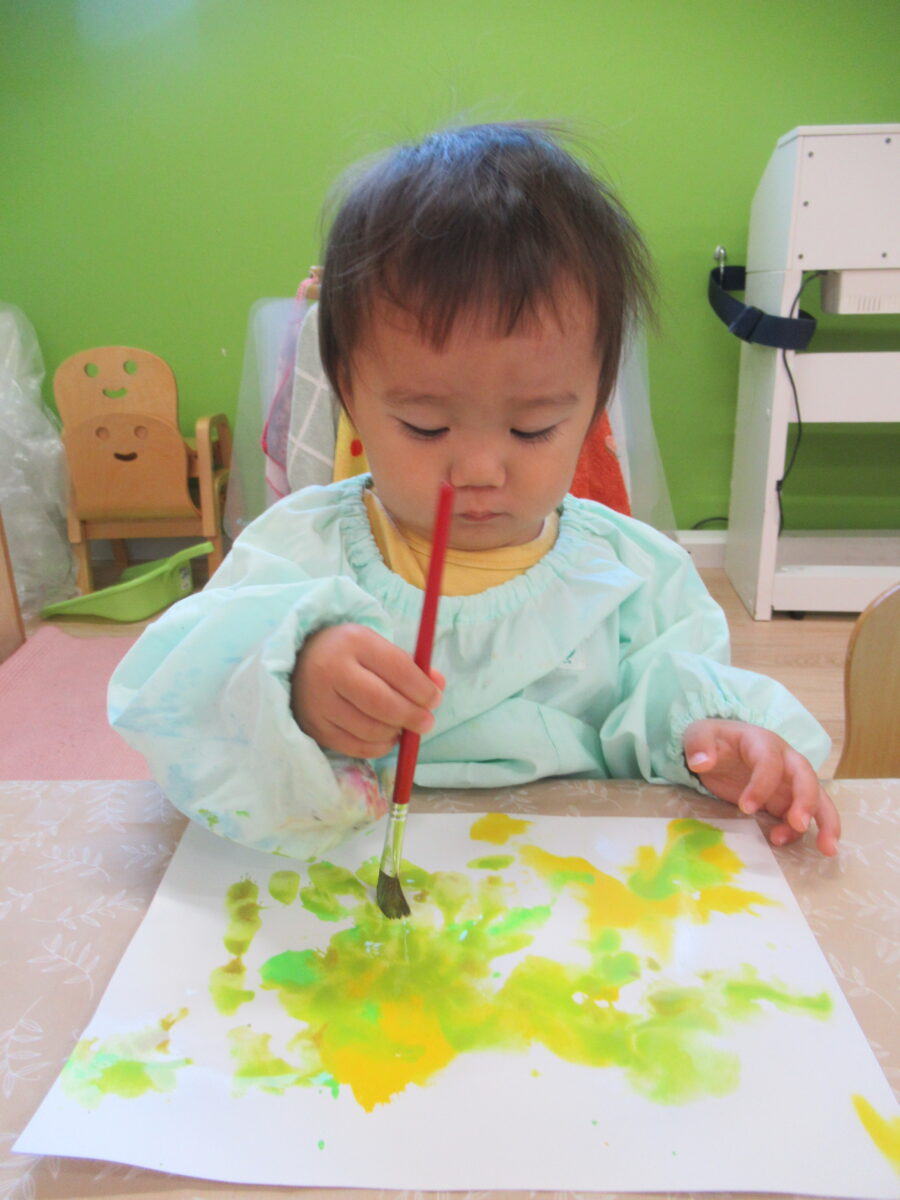 スーッと伸びていく絵具をみてニコニコ笑いながら何度も繰り返し楽しんでいましたよ![]()