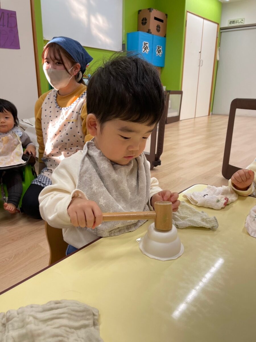 鏡開きとは、お正月に年神様にお供えしていた鏡餅を下げ、割って食べる昔から日本の習慣です。11日土曜日だったので本日行いました。