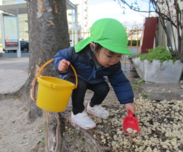 寒さに負けず戸外で元気に遊んでいるよ。
